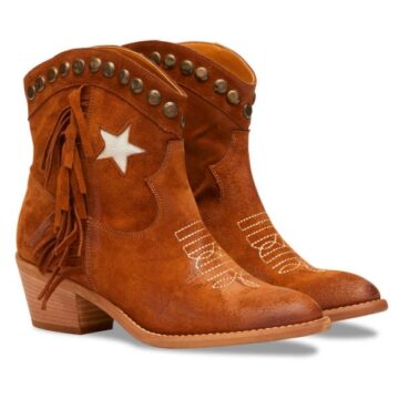 Ovyè – Texano in camoscio con frange e borchie