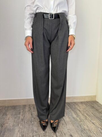 Pantalone con Pieghe e Cintura Passante spigato – Vicolo