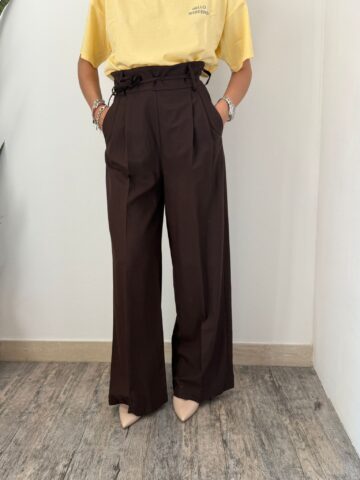 Vicolo – Pantalone Palazzo in lino moro