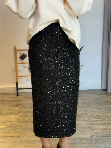 Il prezzo originale era: € 112,00.€ 56,00Il prezzo attuale è: € 56,00.Gonna Longuette in Pizzo e Paillettes – Vicolo1 Dicembre 2024 -