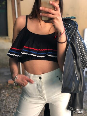 Il prezzo originale era: € 49,00.€ 24,50Il prezzo attuale è: € 24,50.Top in popeline con trinette17 Maggio 2024 -