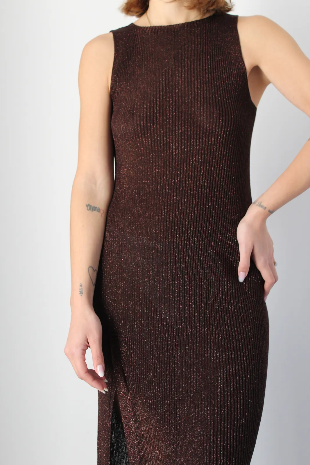 Maxi abito smanicato a coste lurex con spacco laterale sul fondo, leggermente svasato