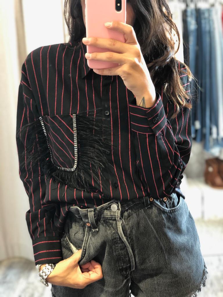 Camicia gessata con patta in piume – Shiki17 Maggio 2024