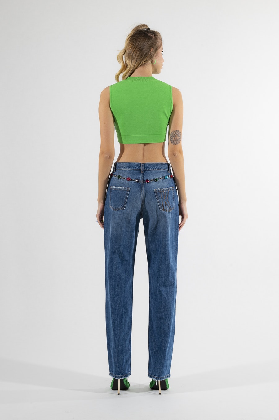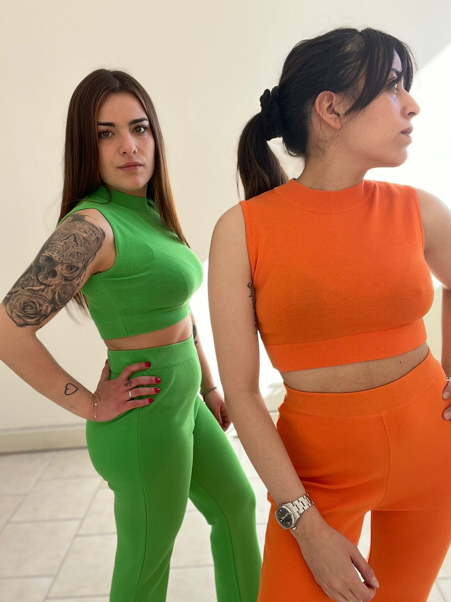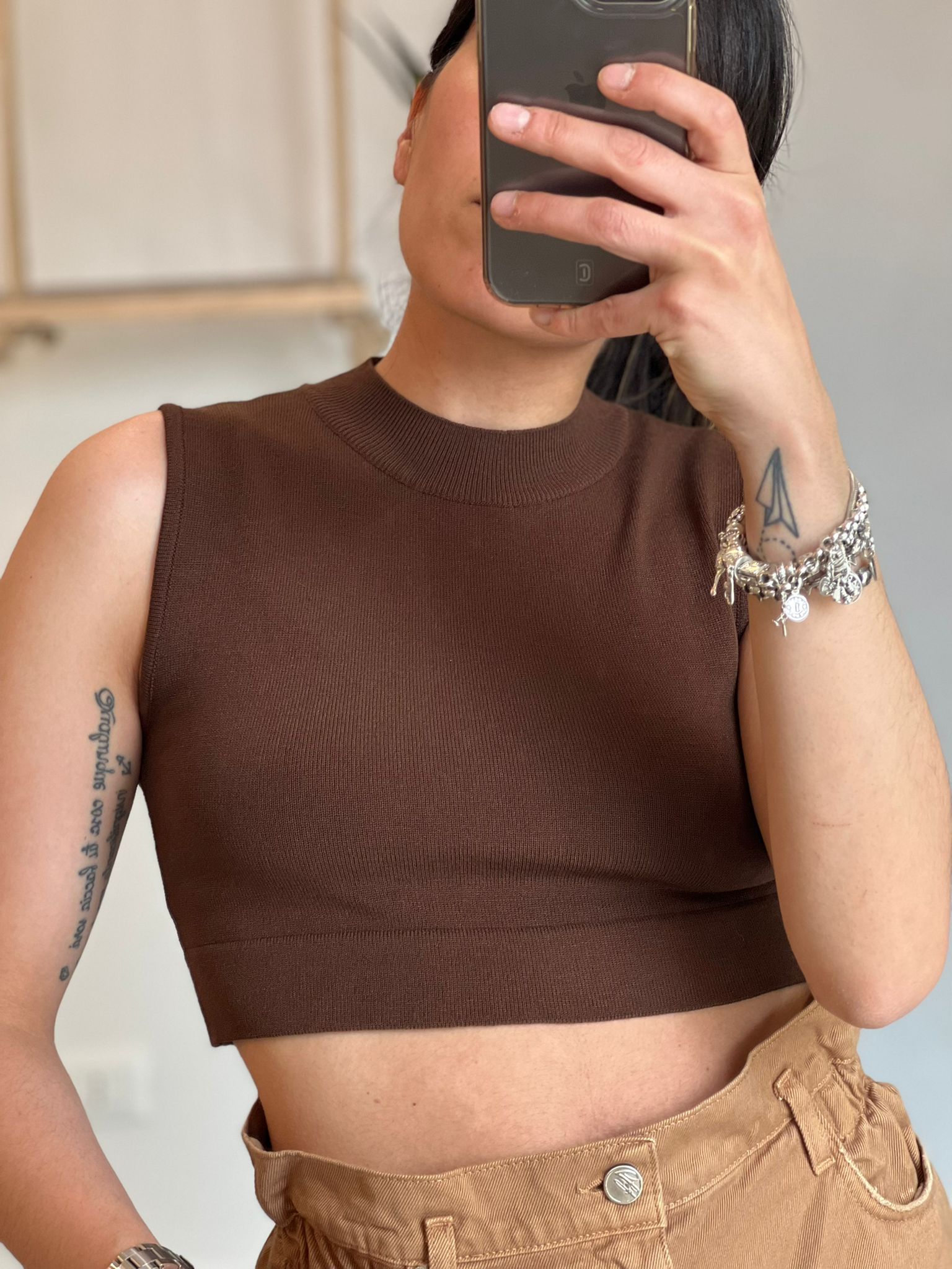 Canotta taglio cropped vestibilità aderente, girocollo smanicata