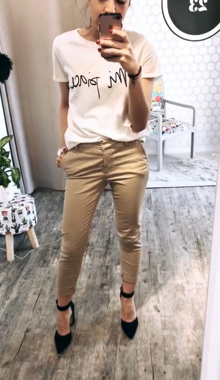 Pantalone chino in cotone, vita bassa, gamba dritta e morbida