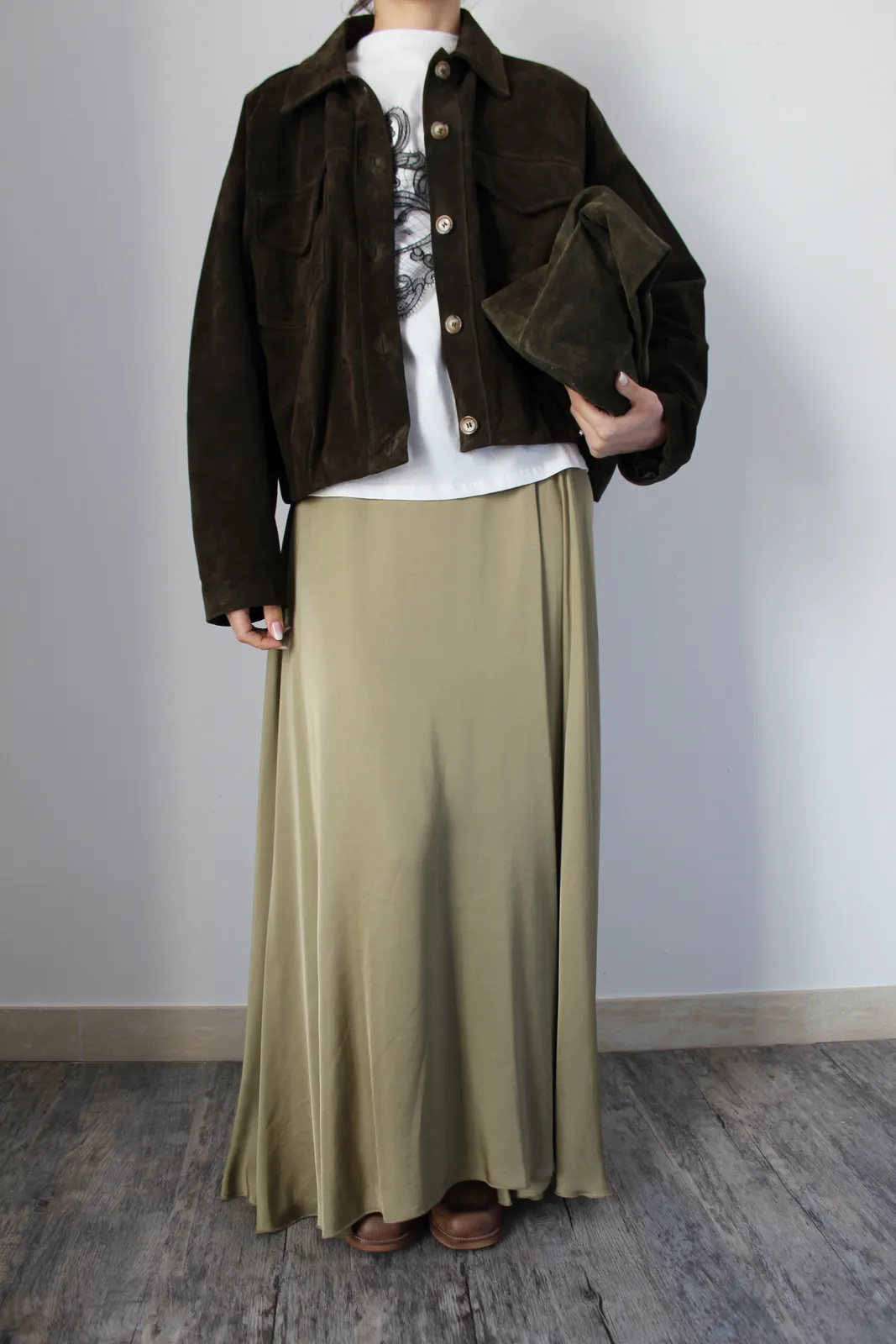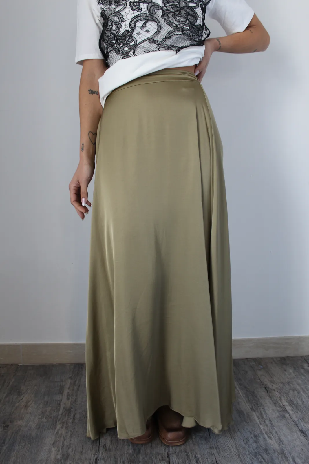 Maxi gonna ampia con arriccio in vita sul retro