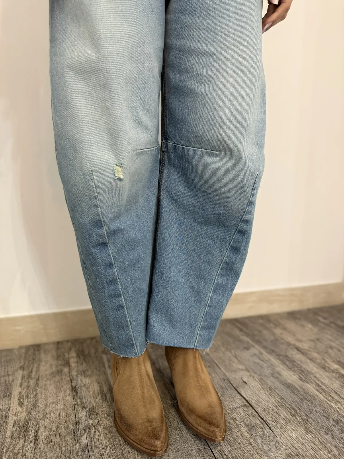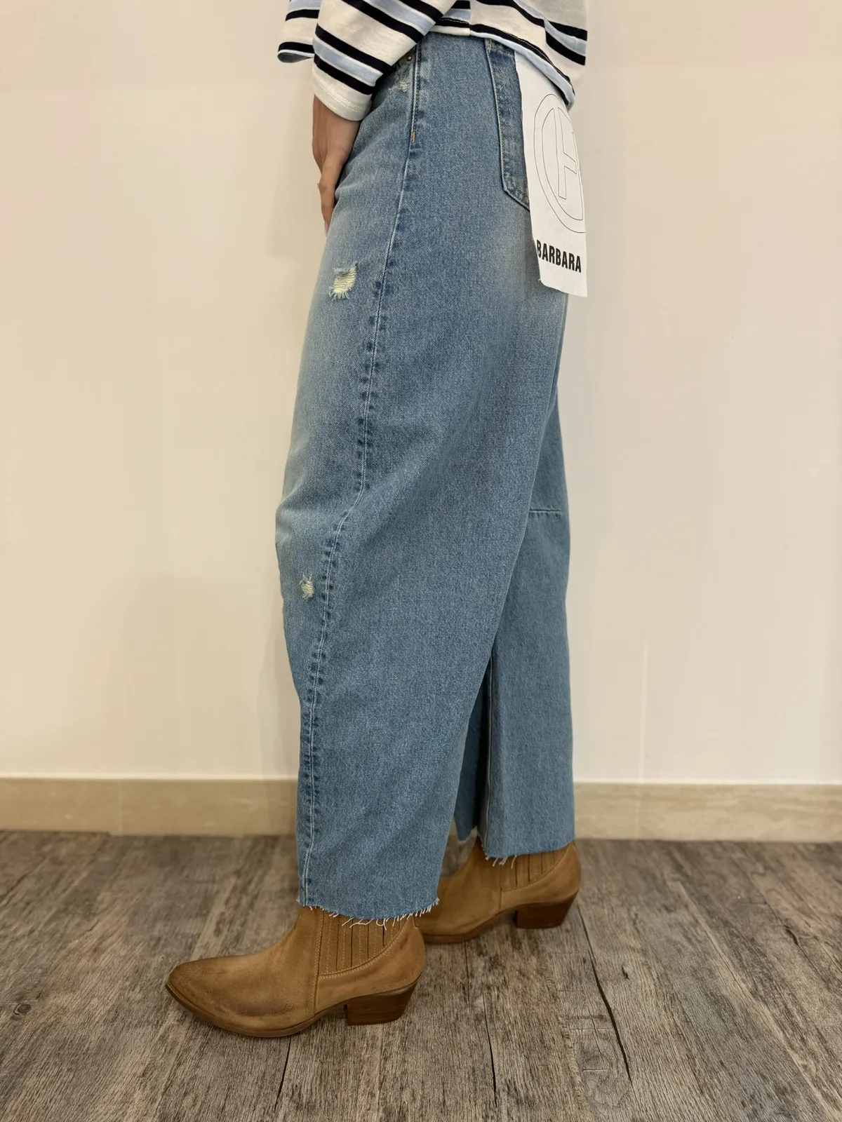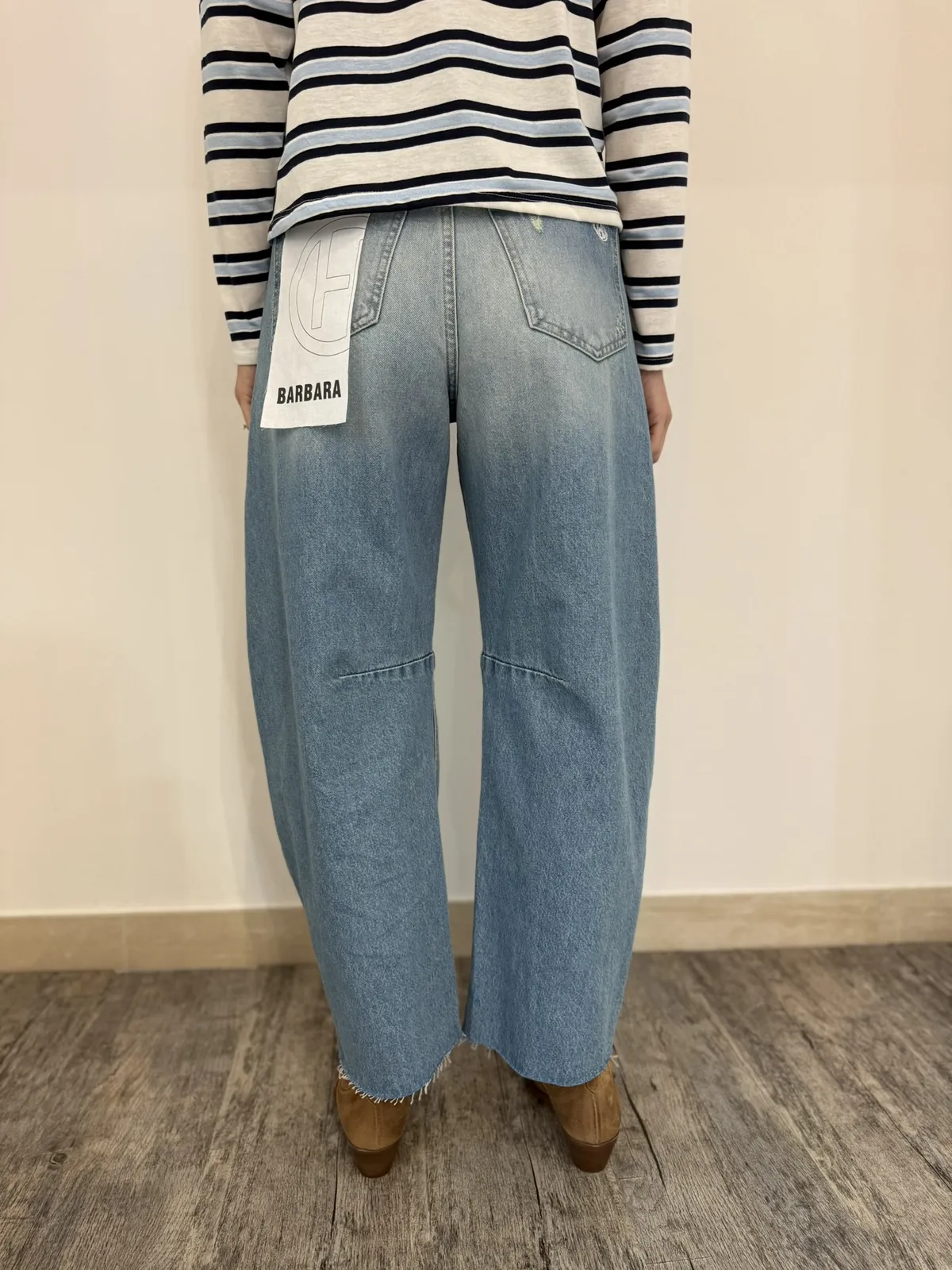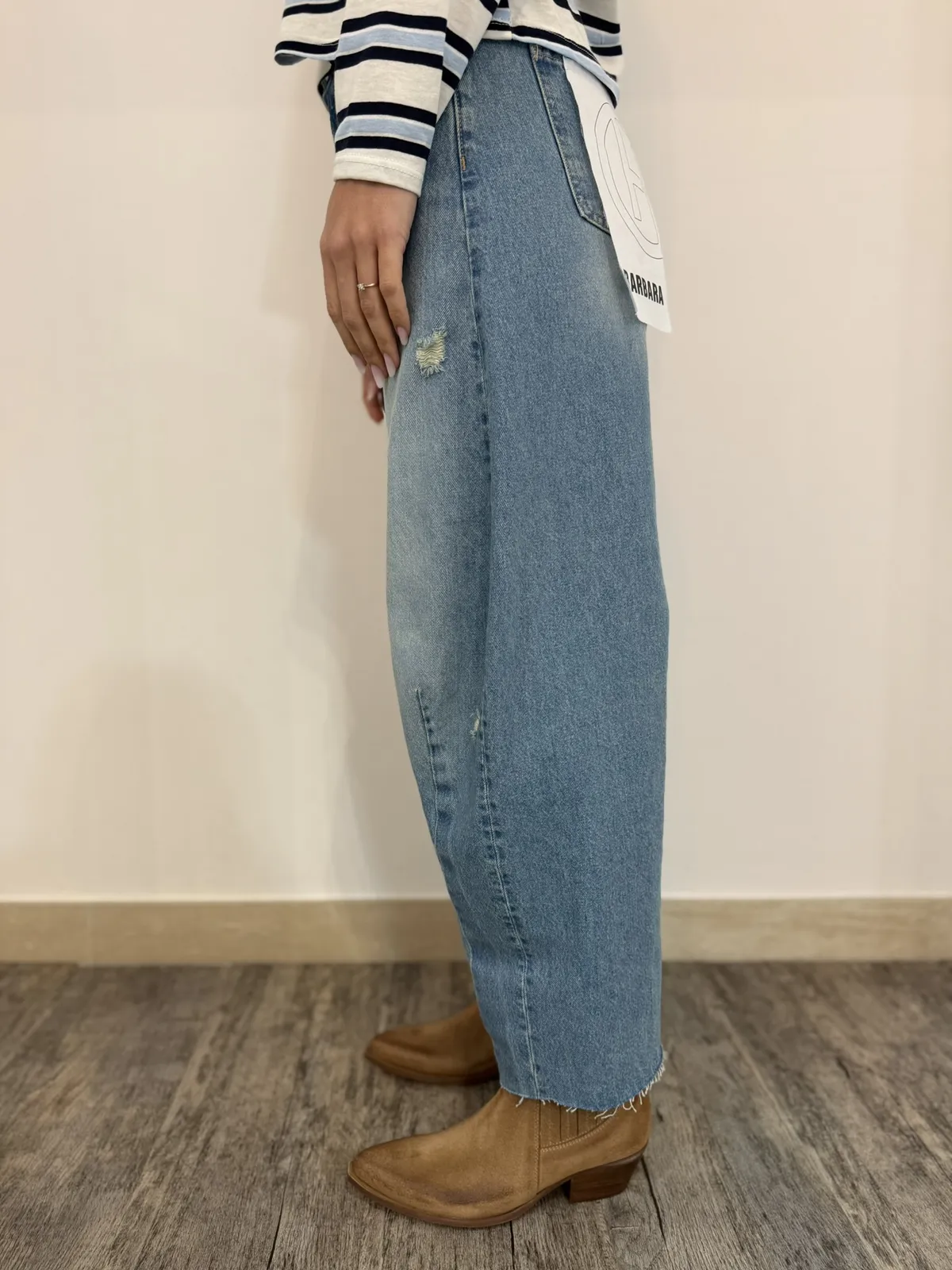 Jeans modello Barbara, barrel fit in tela 100% cotone lavaggio denim medio, vita alta