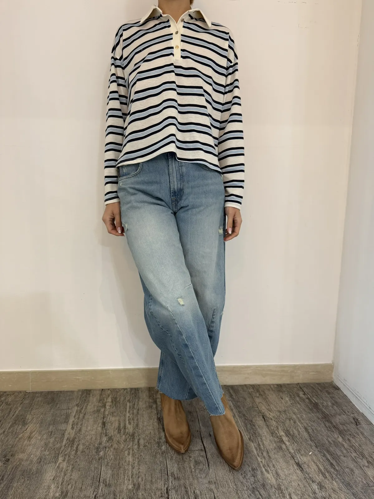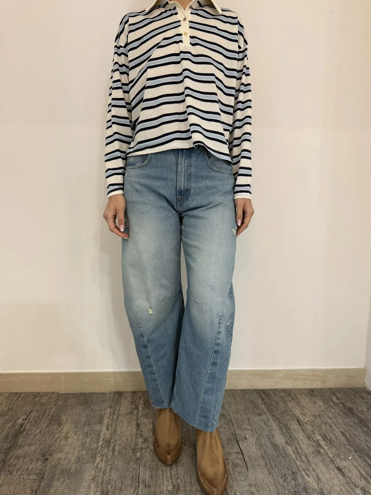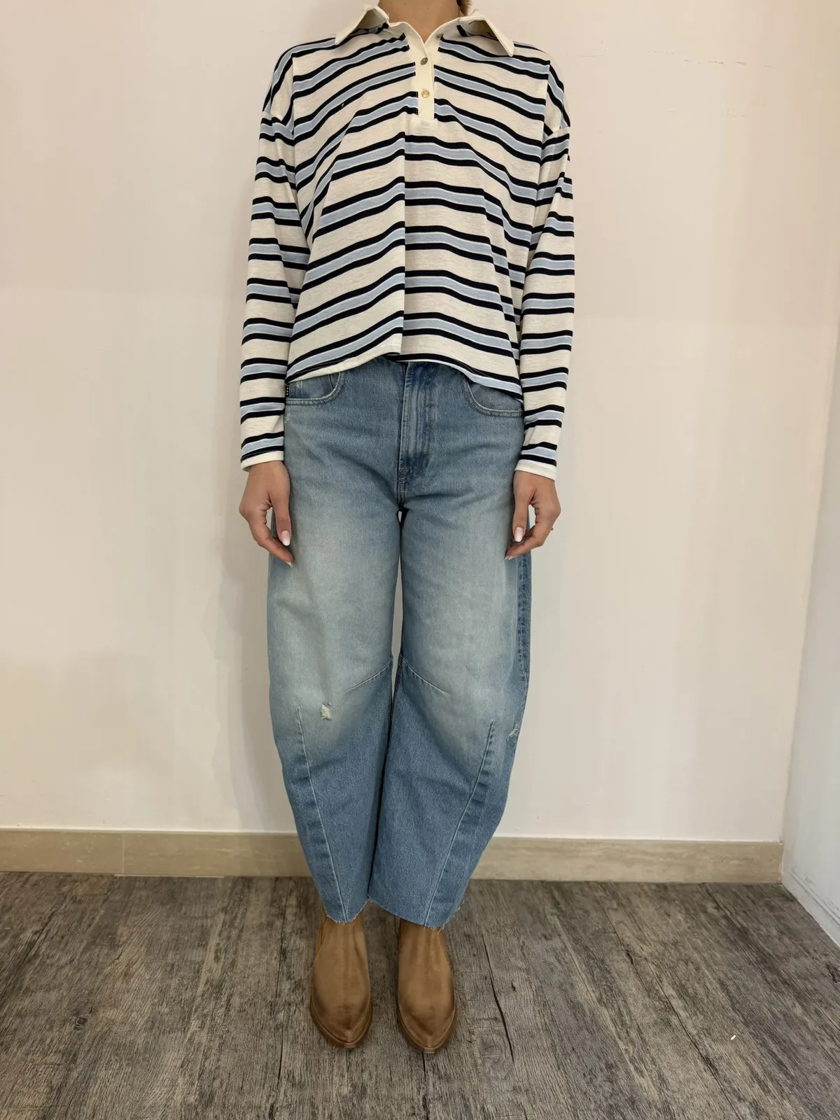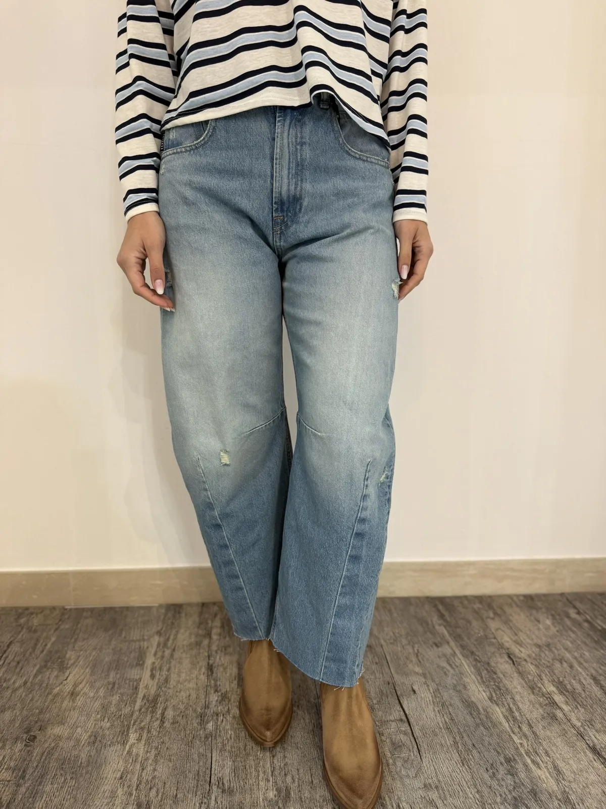 Jeans modello Barbara, barrel fit in tela 100% cotone lavaggio denim medio, vita alta