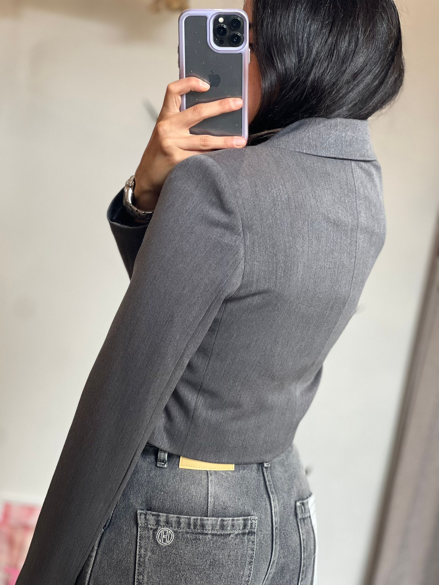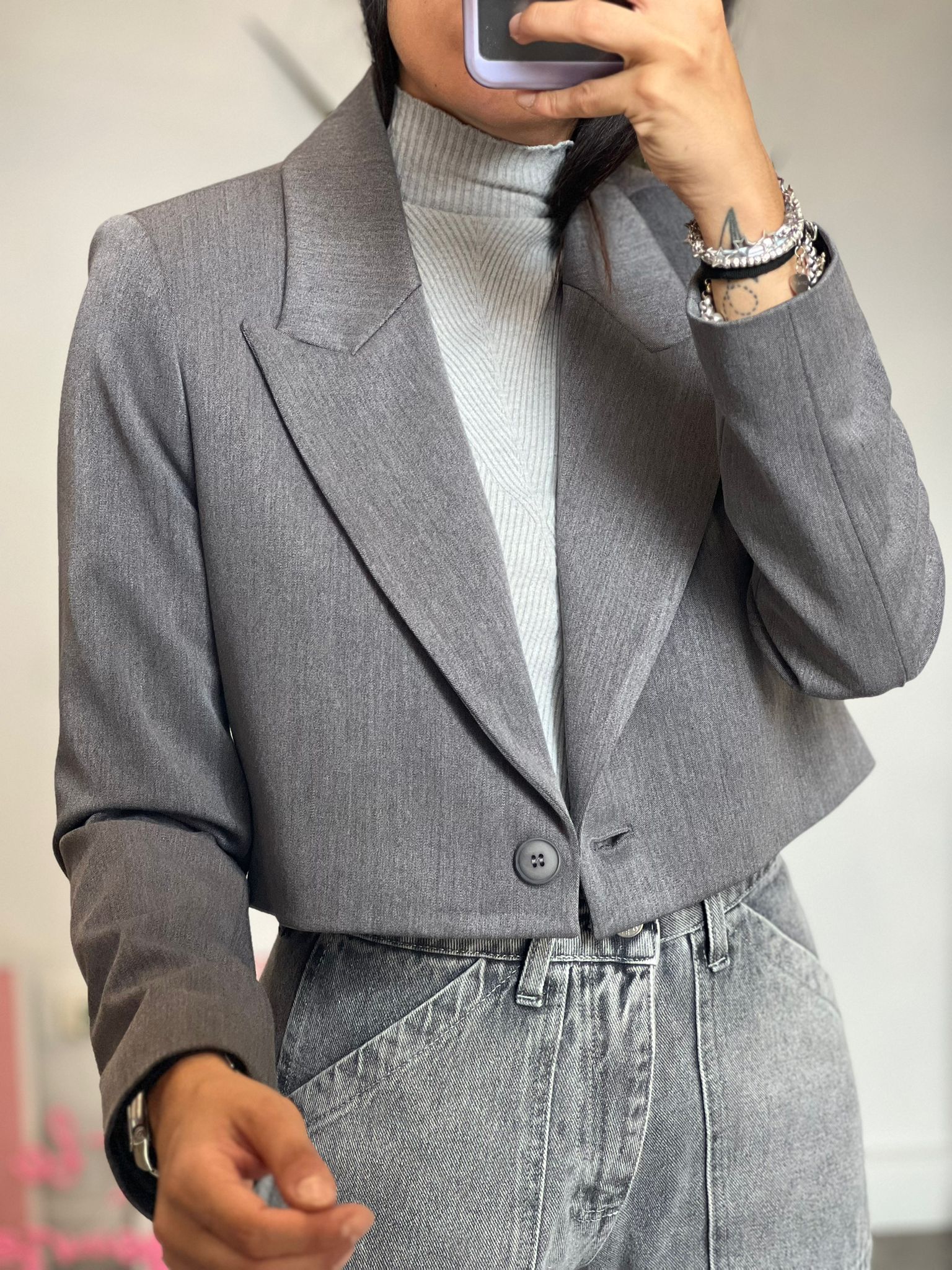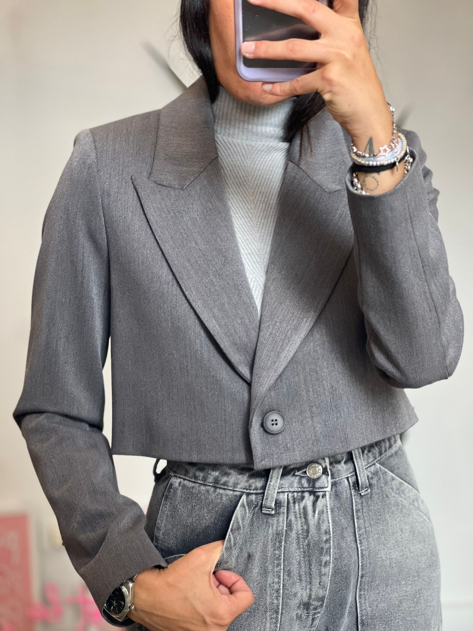 Giacchina cropped monopetto taglio a scatola, fodera interna, spalla rinforzata