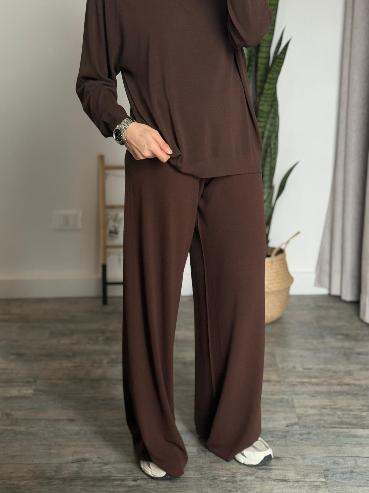 Morbidissimo pantalone palazzo in viscosa con gamba morbida e banda elastica in vita