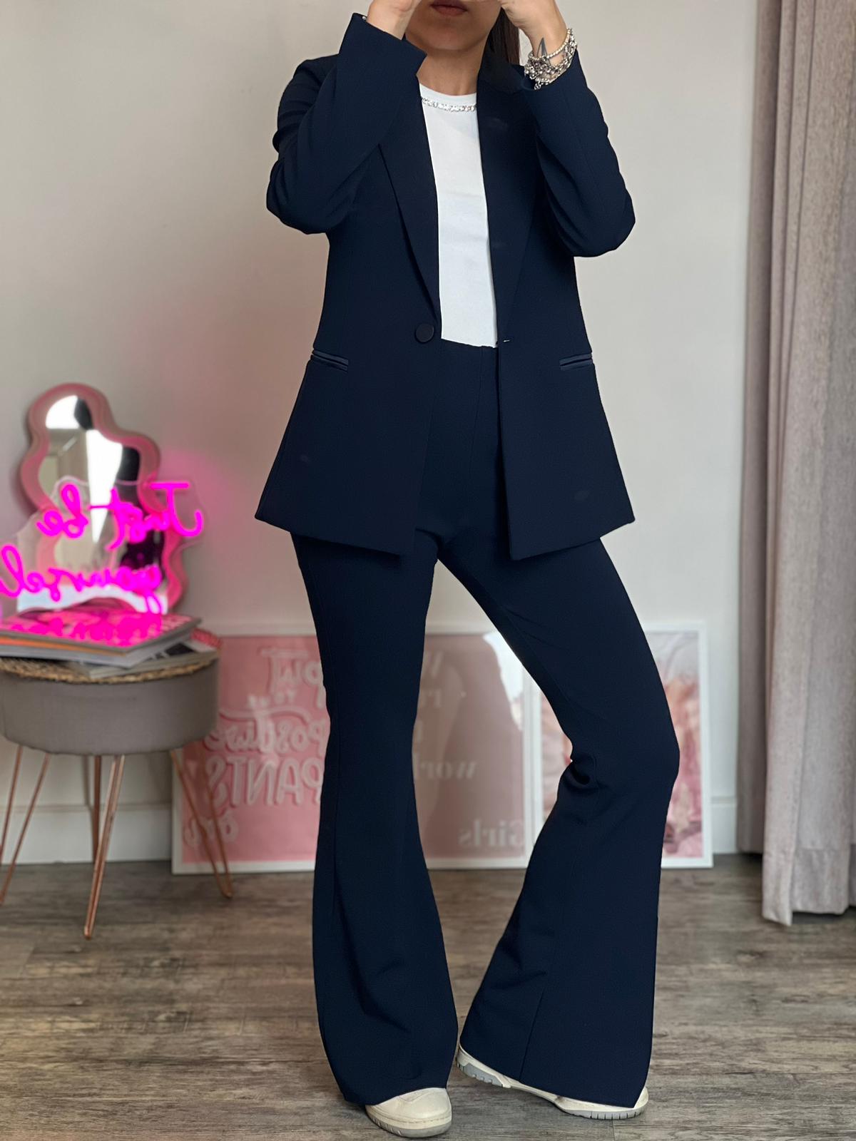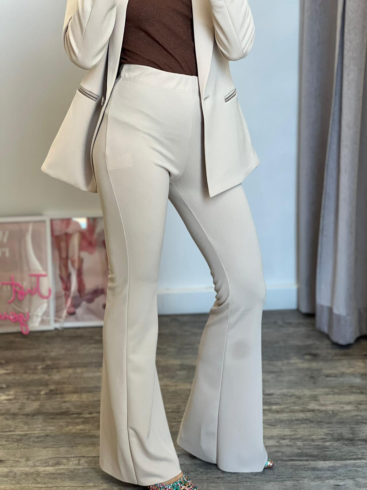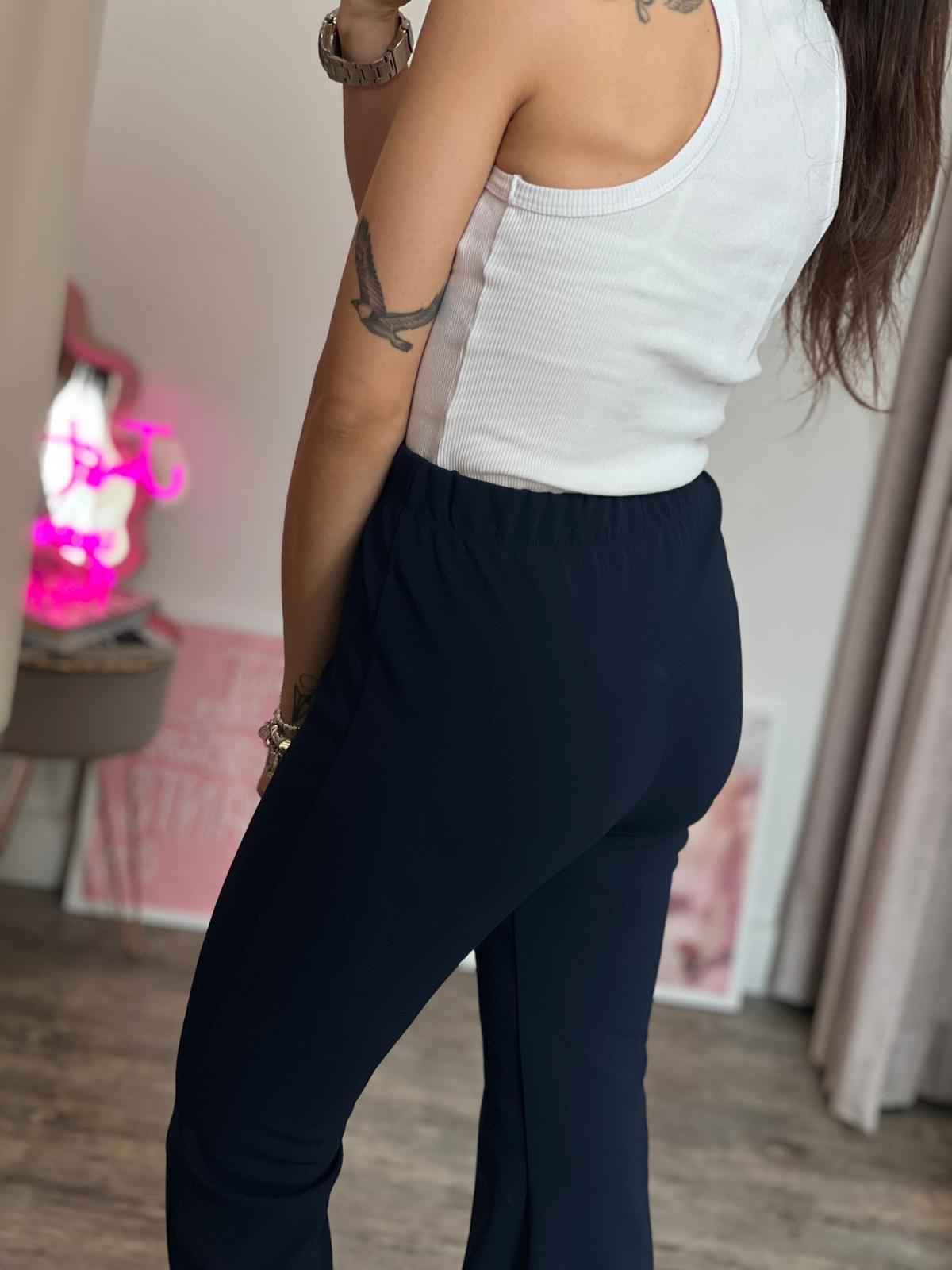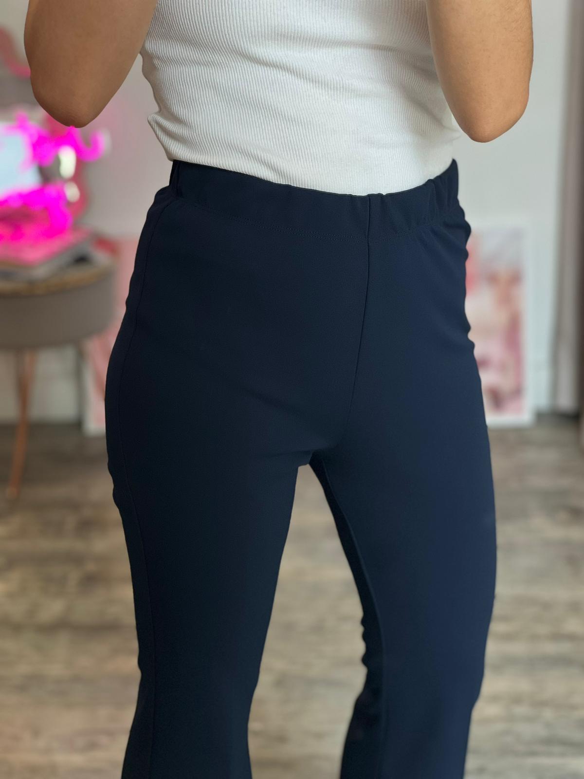 Panta leggings a zampa con dettaglio taglio vivo sulla parte finale, banda elastica arricciata in vita, aderente sulla coscia