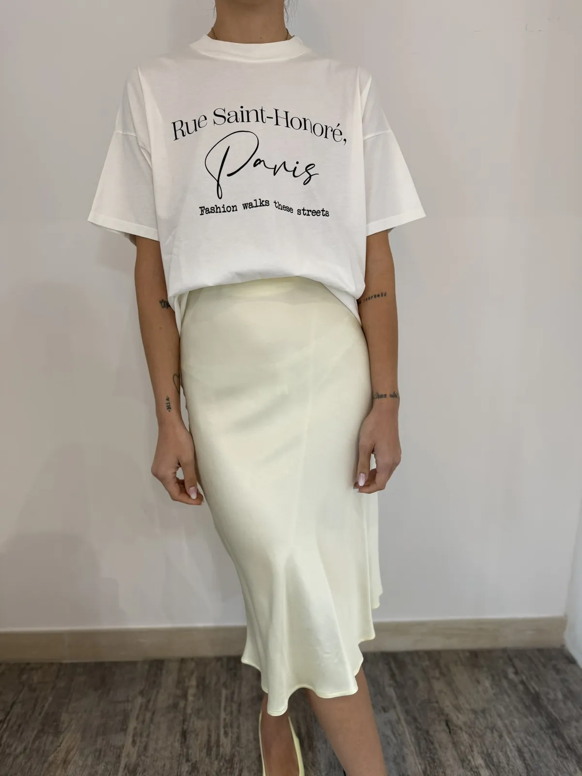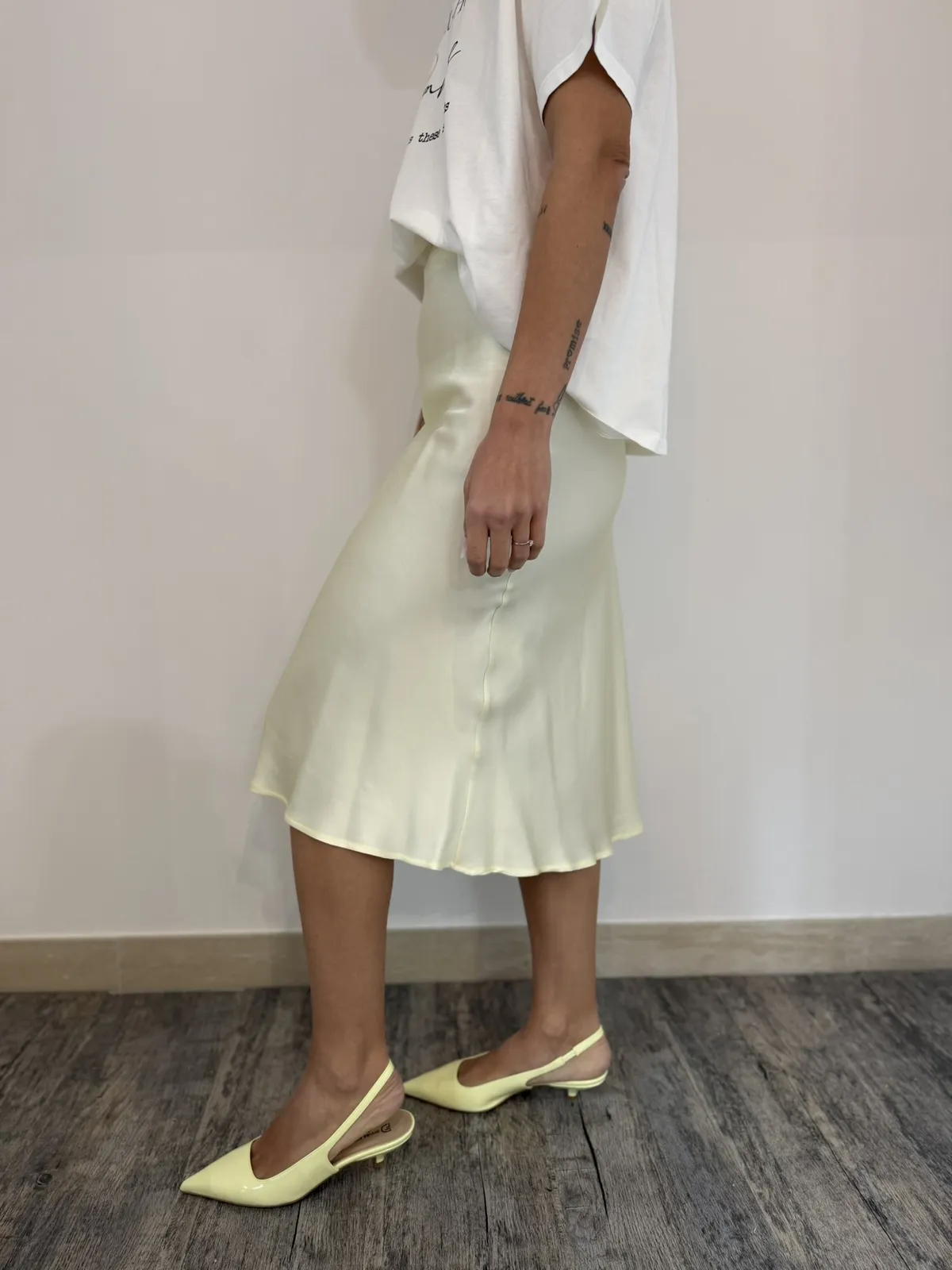 Longuette midi in 100% viscosa effetto seta con banda elastica giro vita