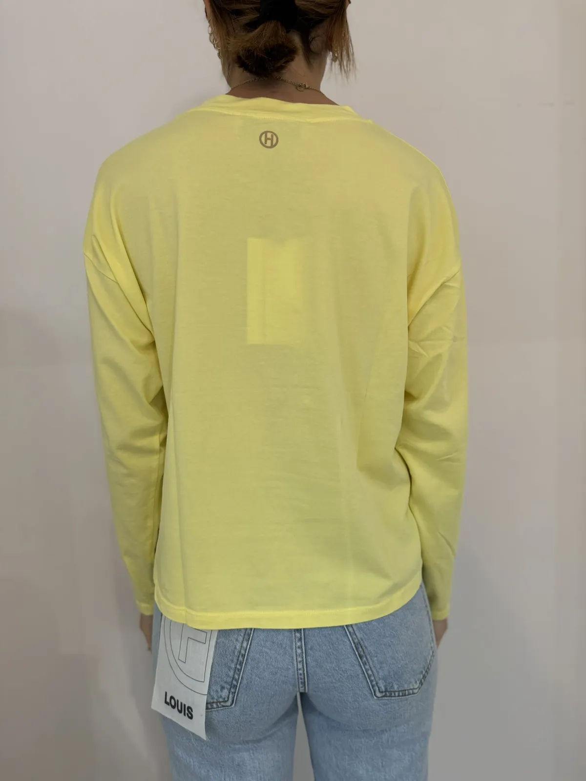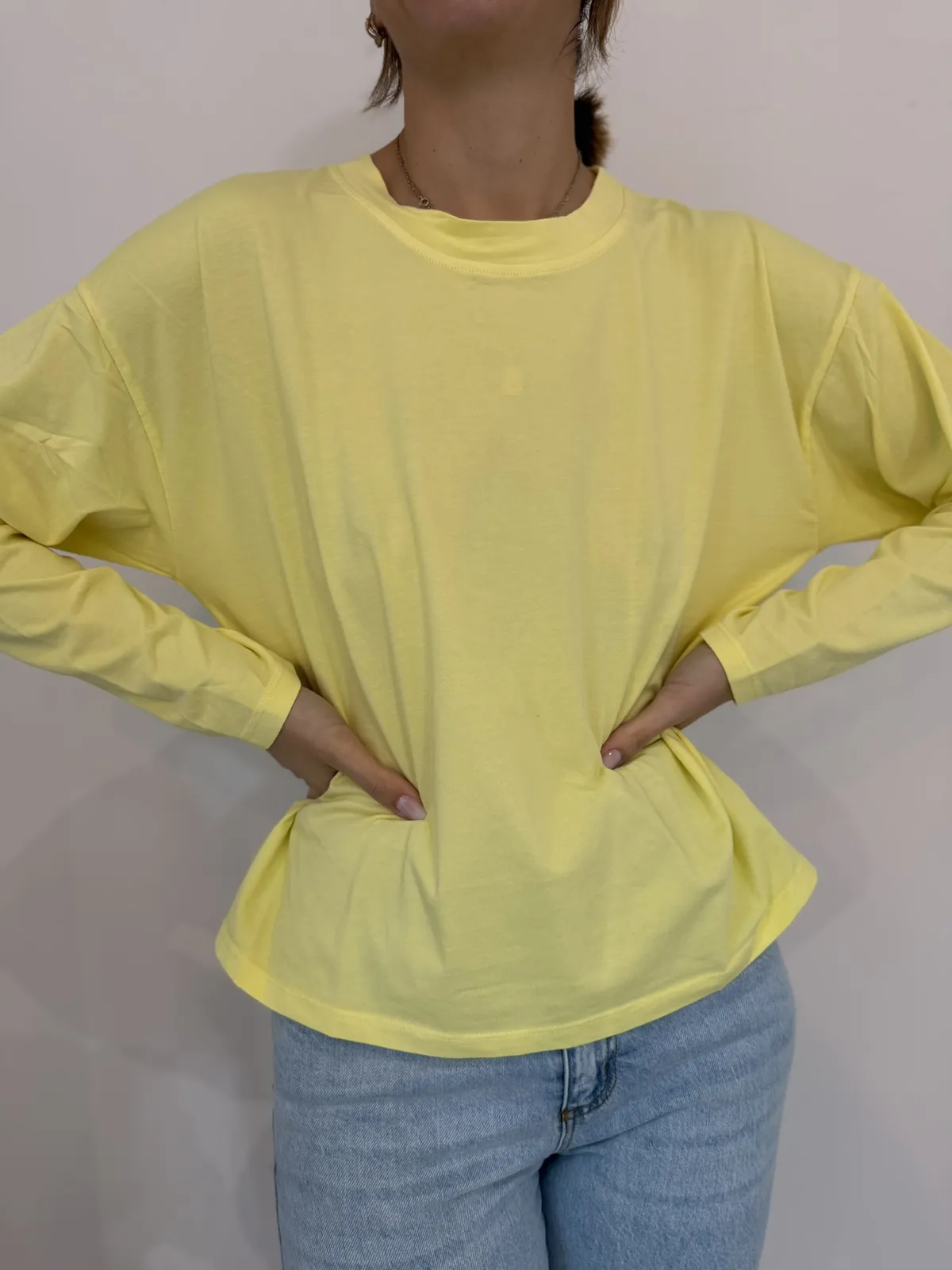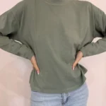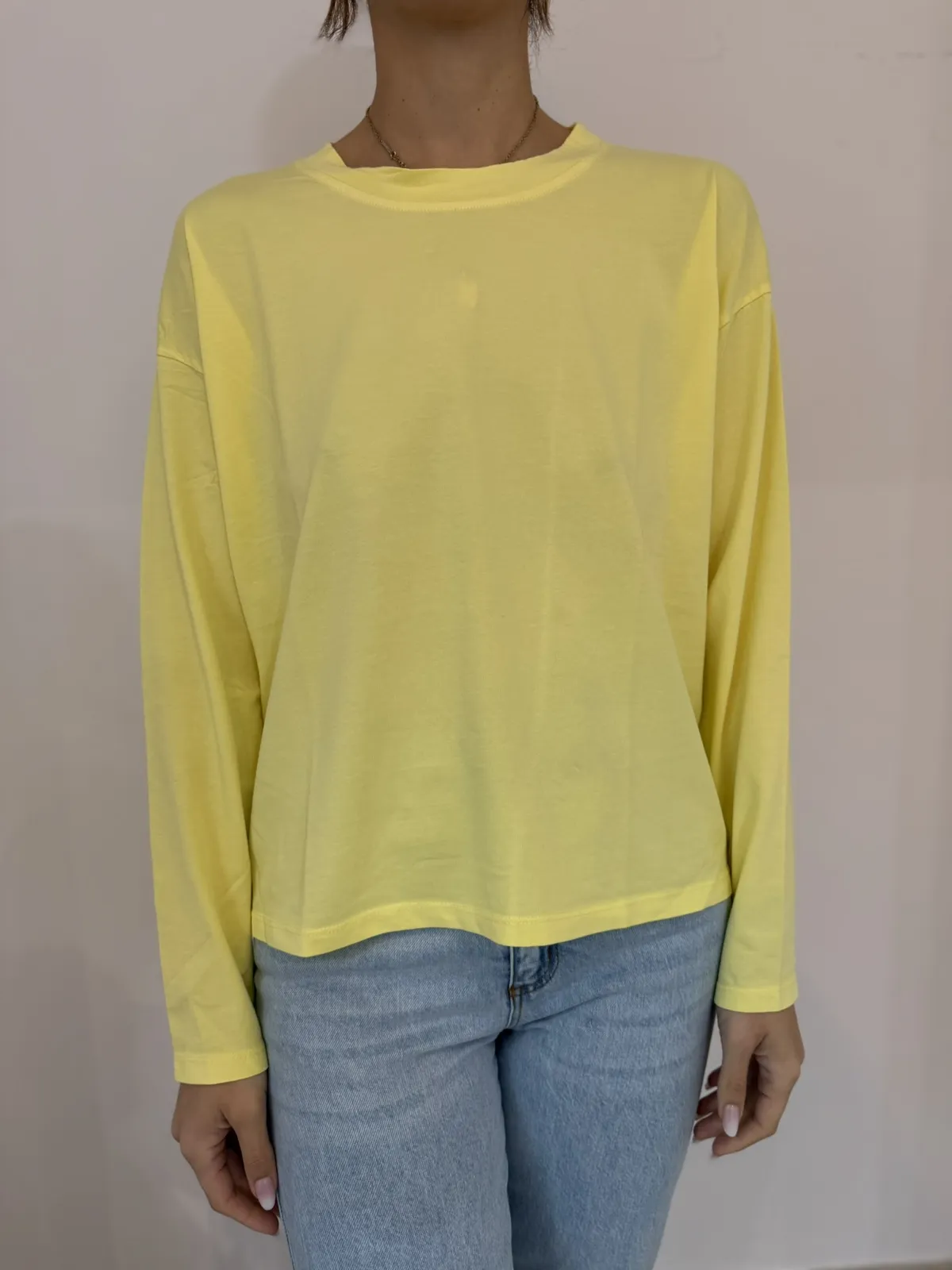 Maglia a scatola paricollo manica lunga in cotone elasticizzato