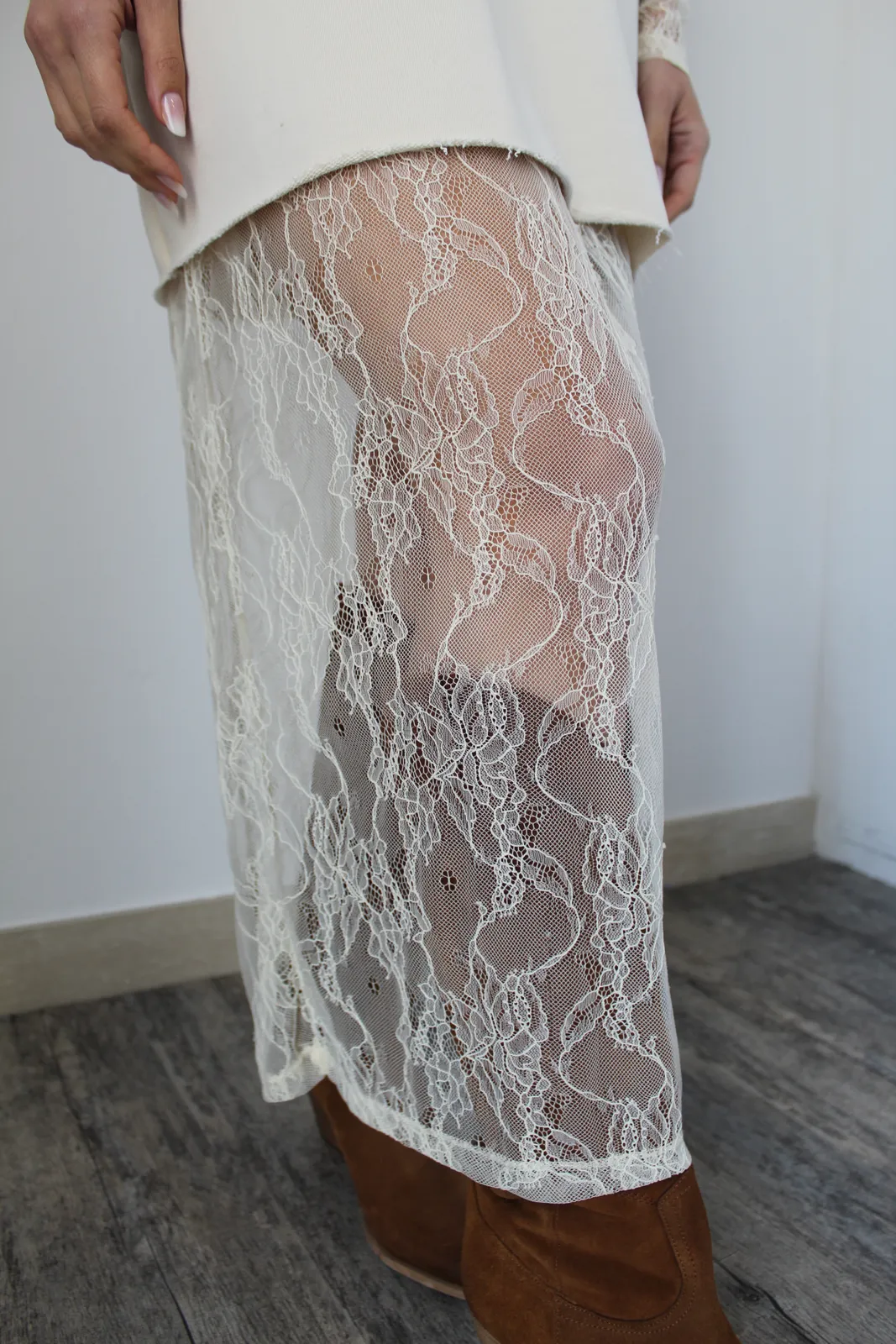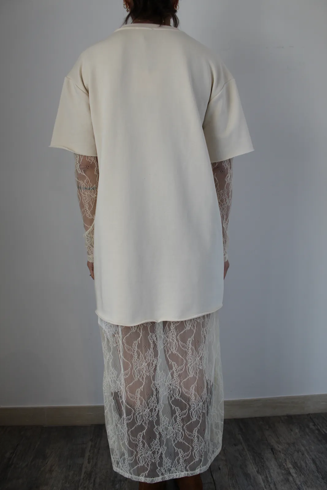 Maxi abito GIRL POWER inserto pizzo burro – Vicolo
