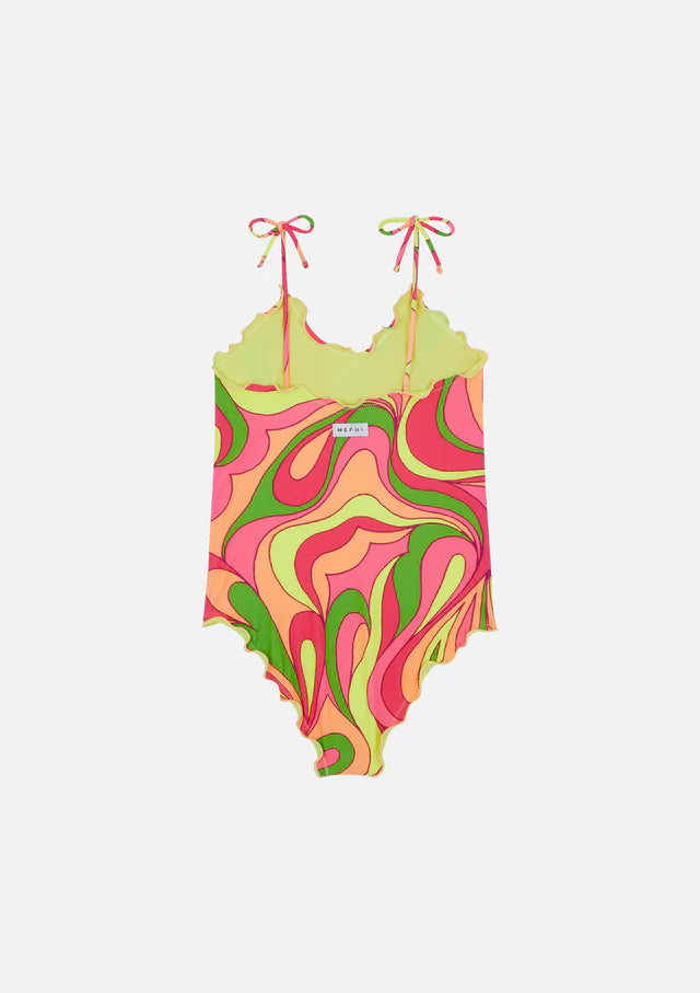 Monokini in tessuto Lycra a fantasia arricciato sui bordi, realizzato con stampa all-over.