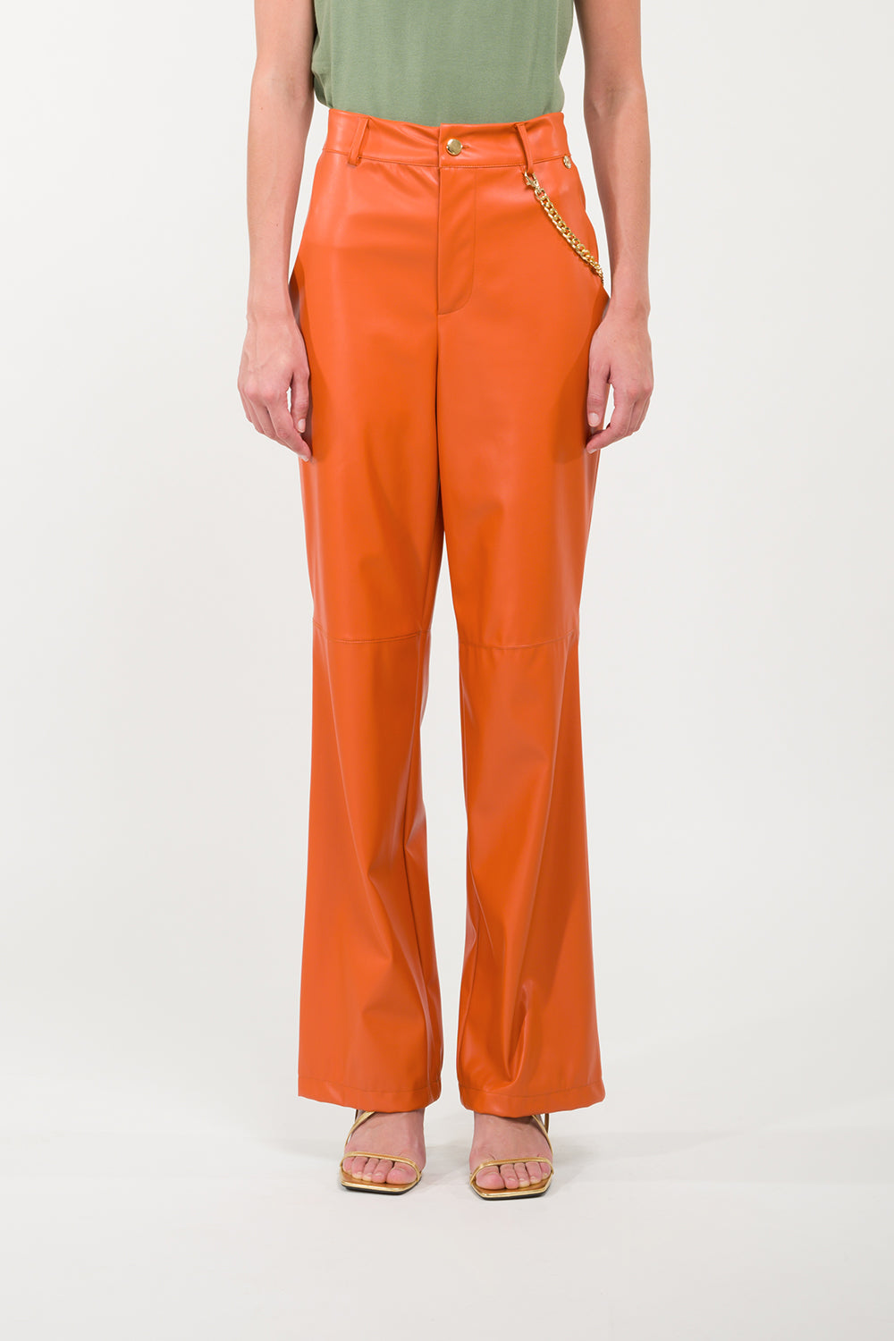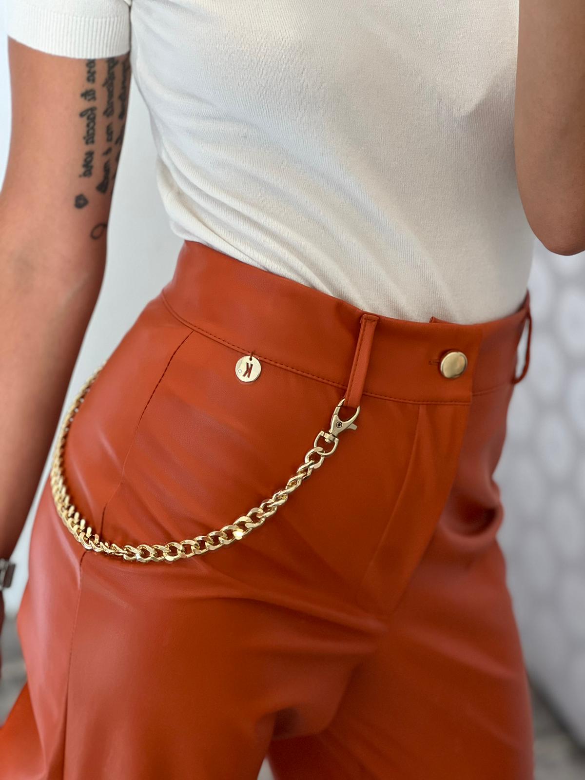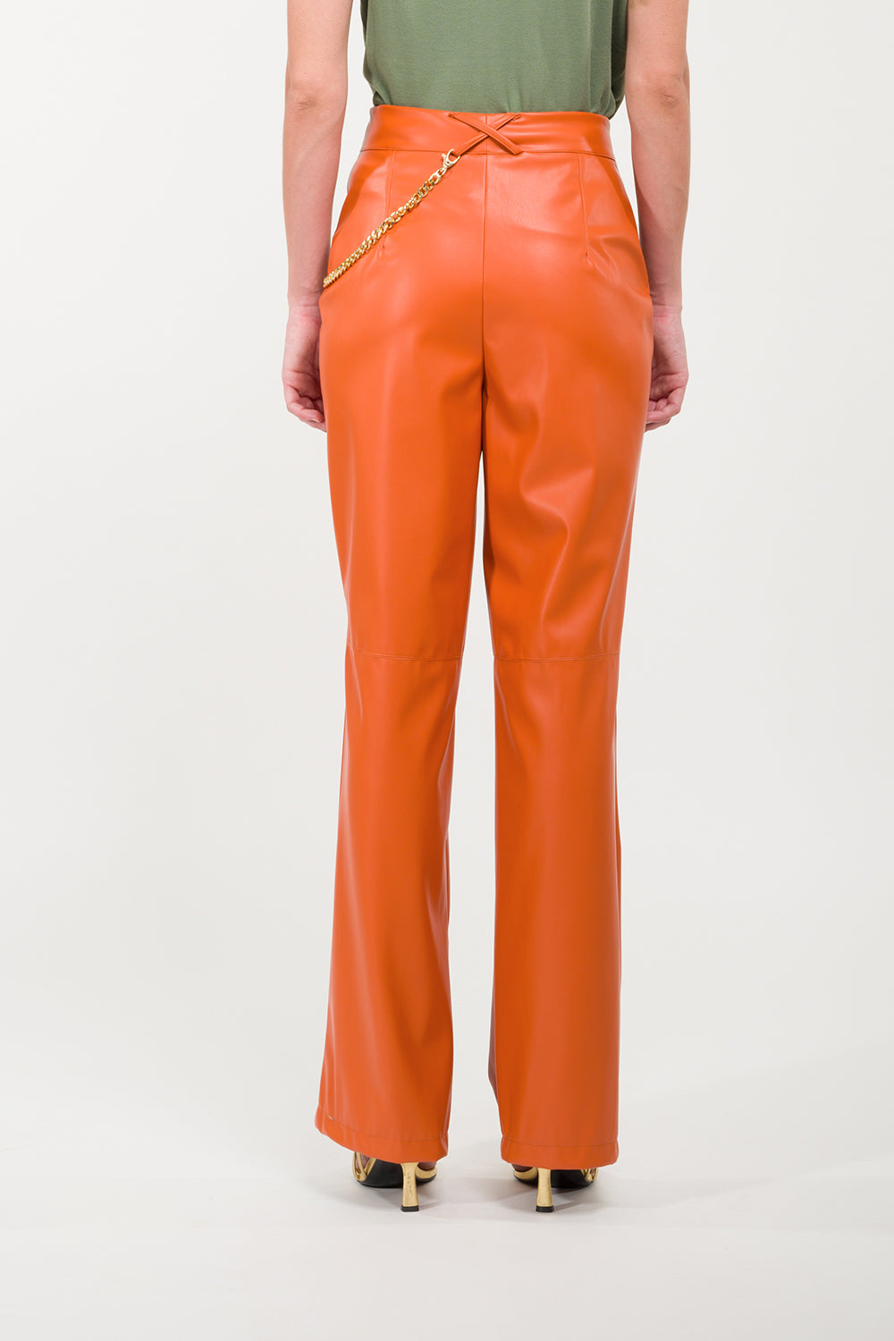 Pantalone in ecopelle con catena gold laterale a scendere (removibile) gamba flared