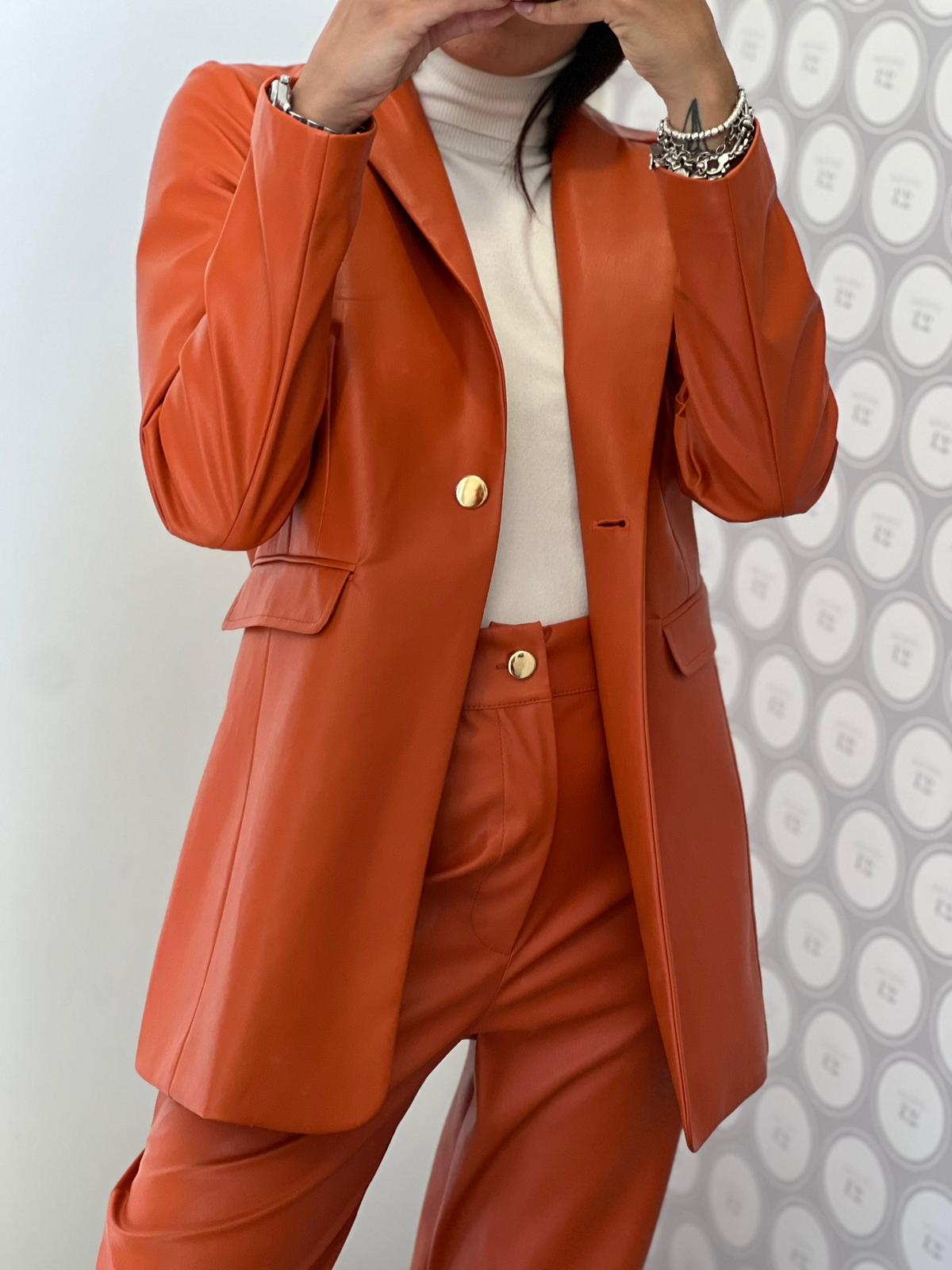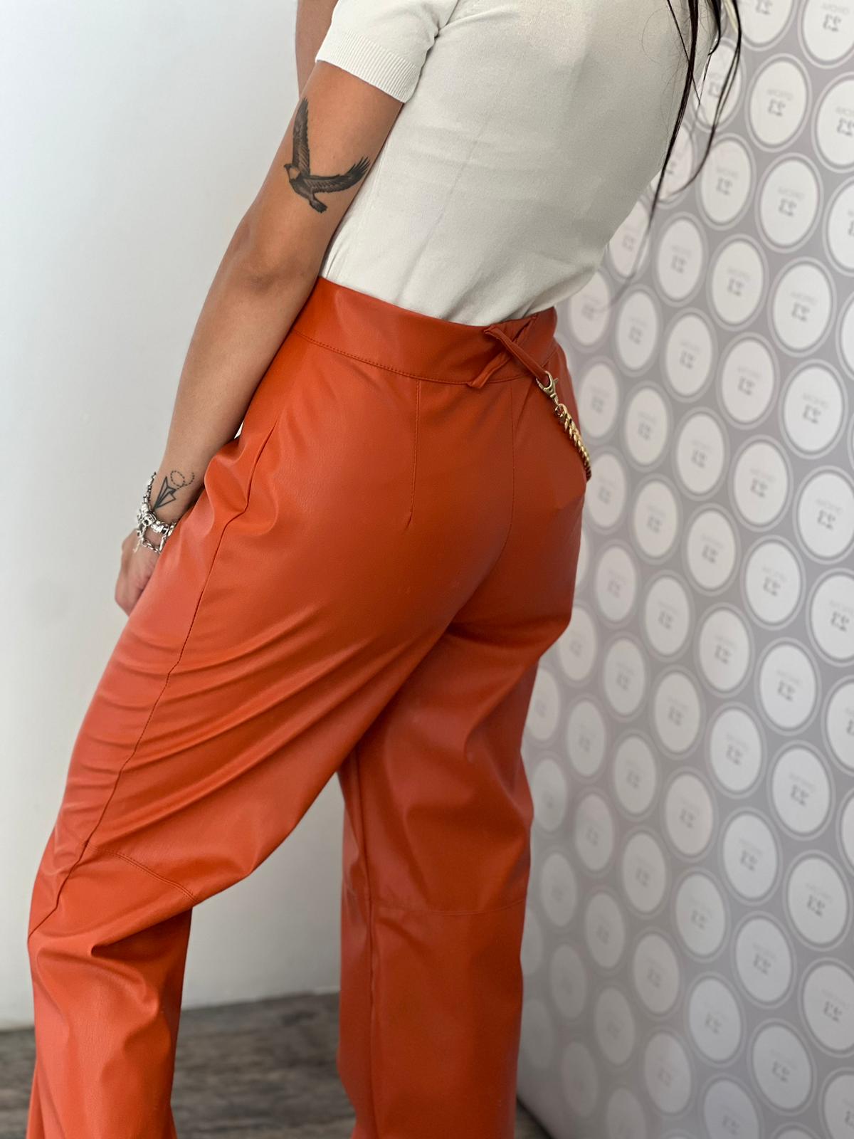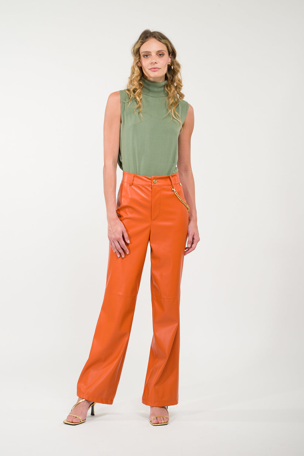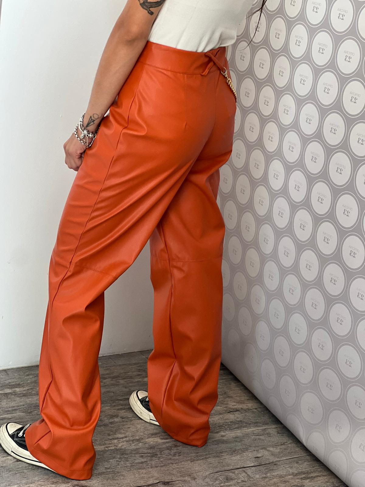 Pantalone in ecopelle con catena gold laterale a scendere (removibile) gamba flared