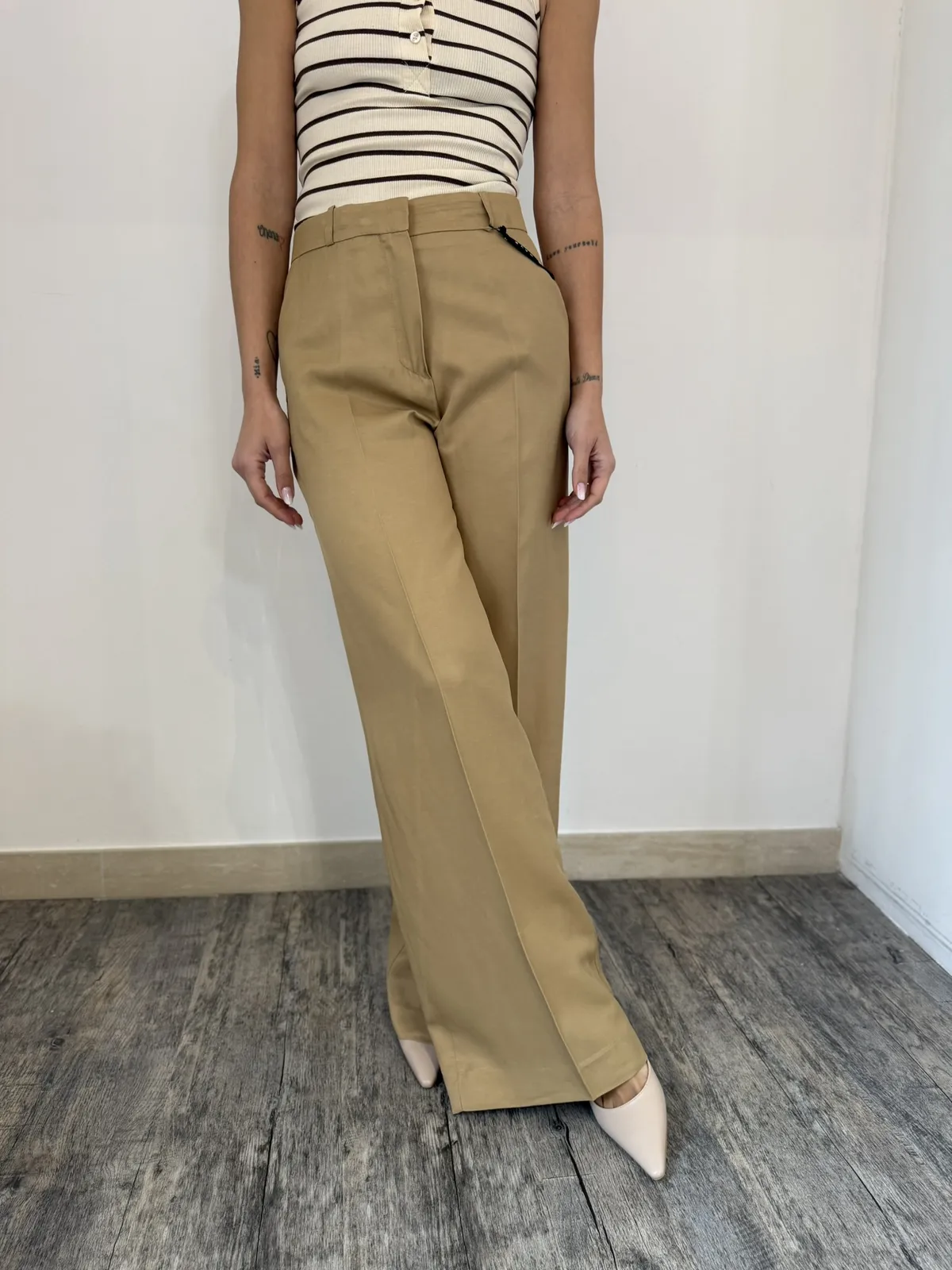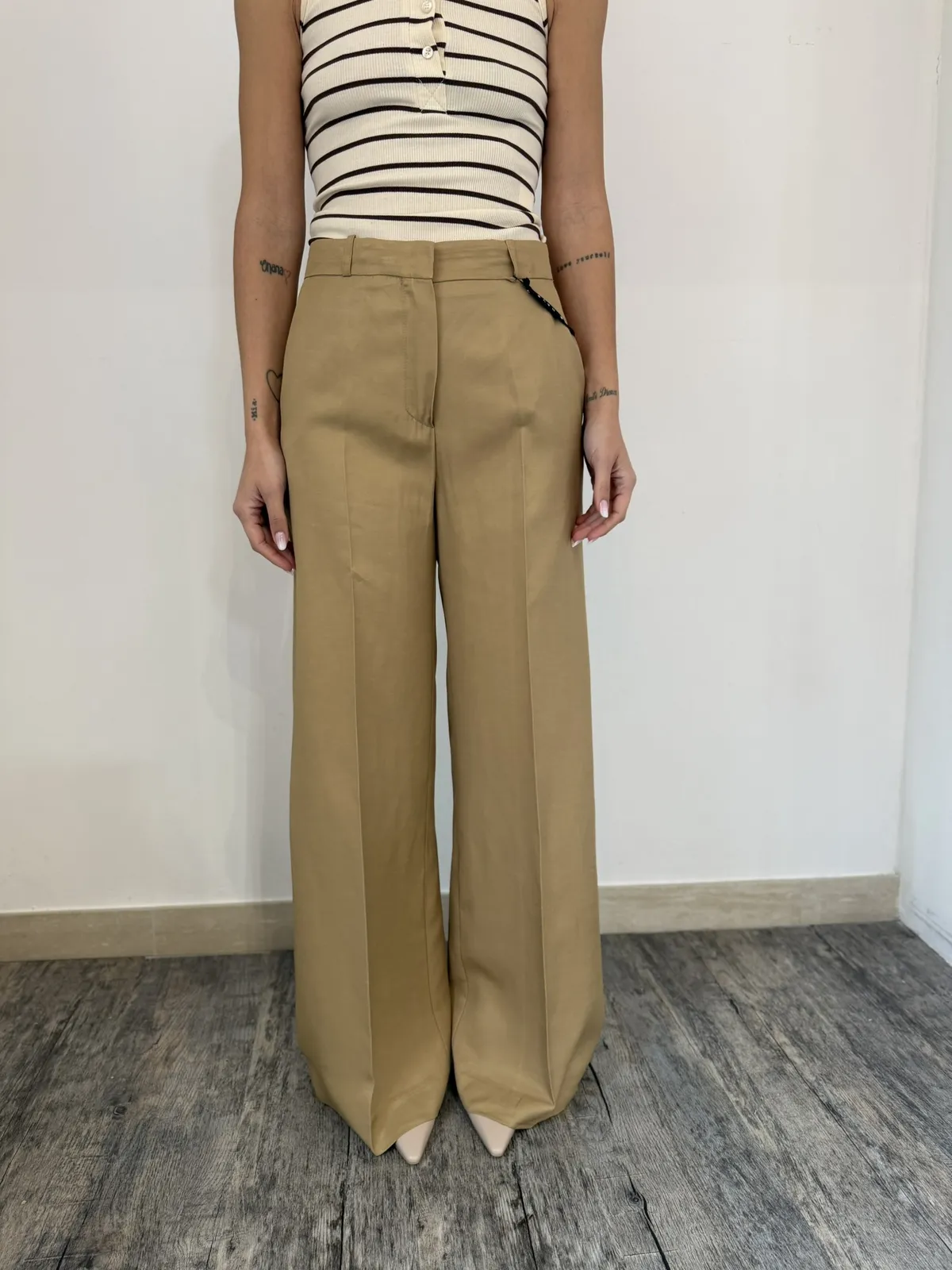 Pantalone palazzo a vita alta con doppia tasca filetto