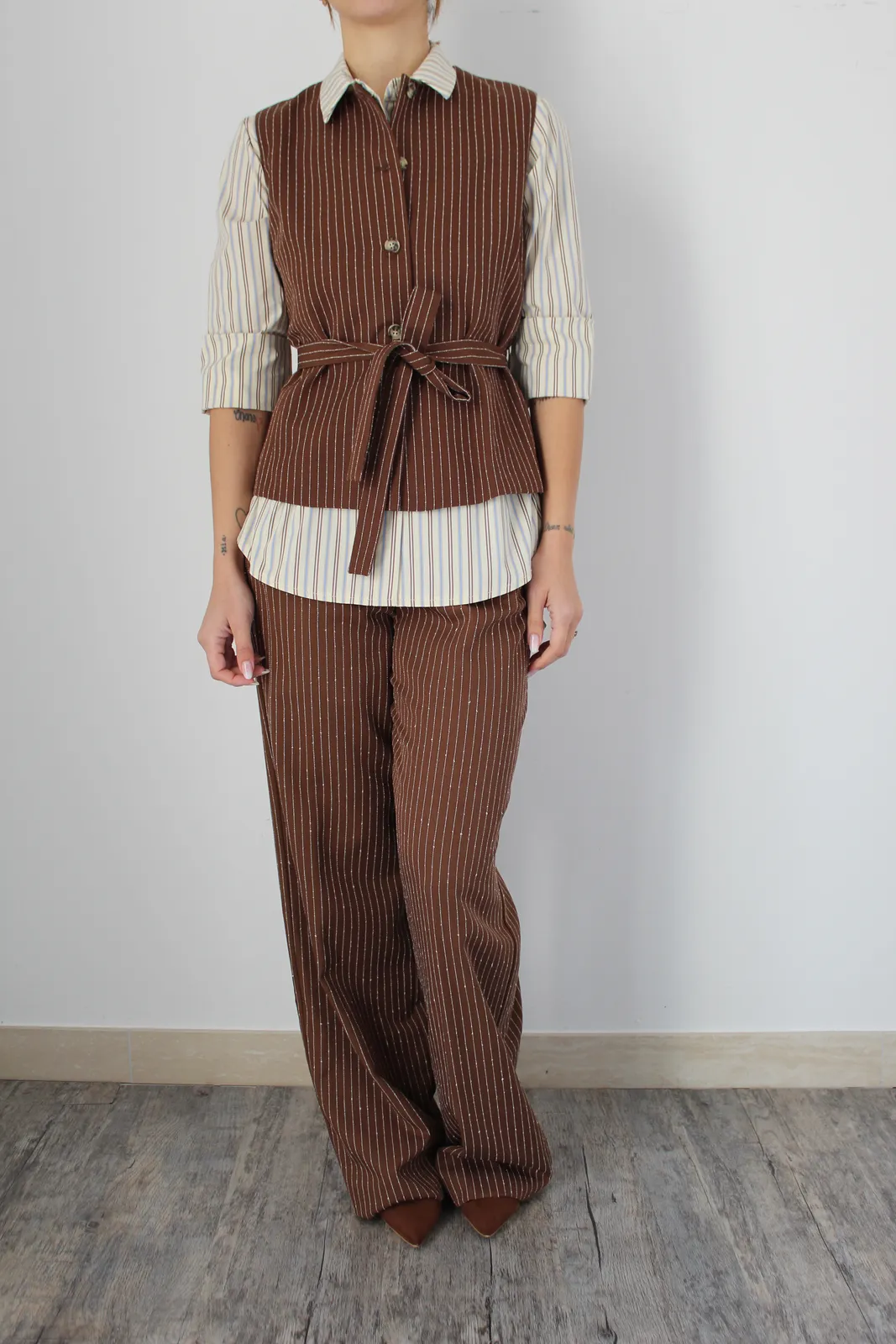 Pantalone con pence a palazzo, doppia tasca filetto, vita media e gessatura in rilievo