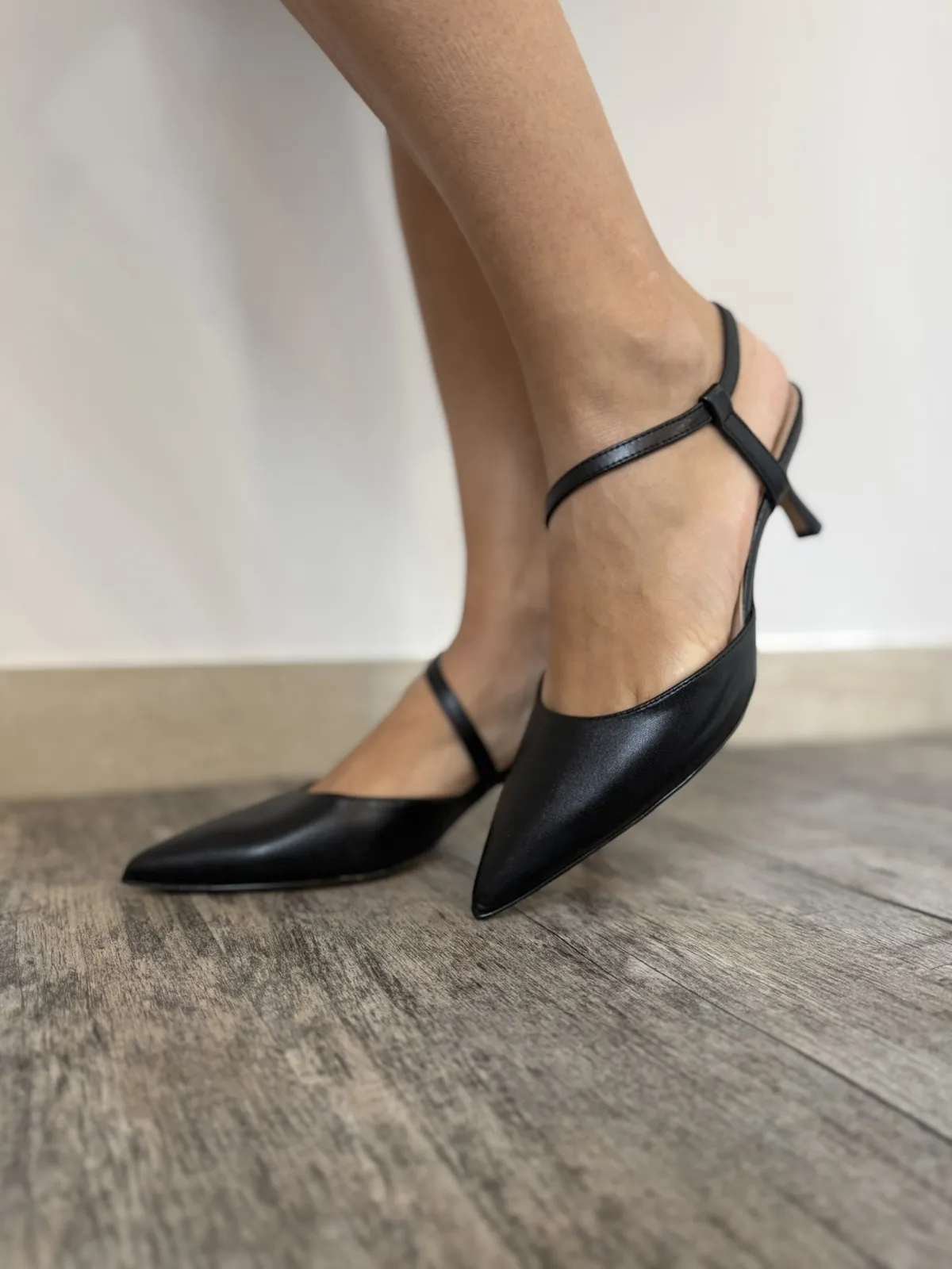 Silngback tacco 6cm in ecopelle con suola in vera pelle, calzata regolare