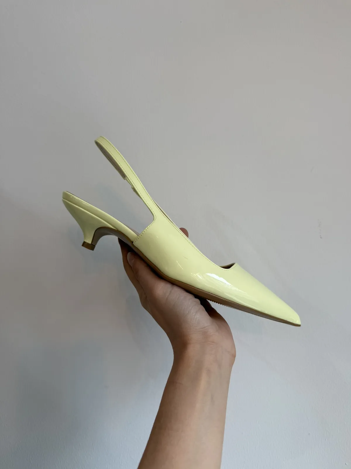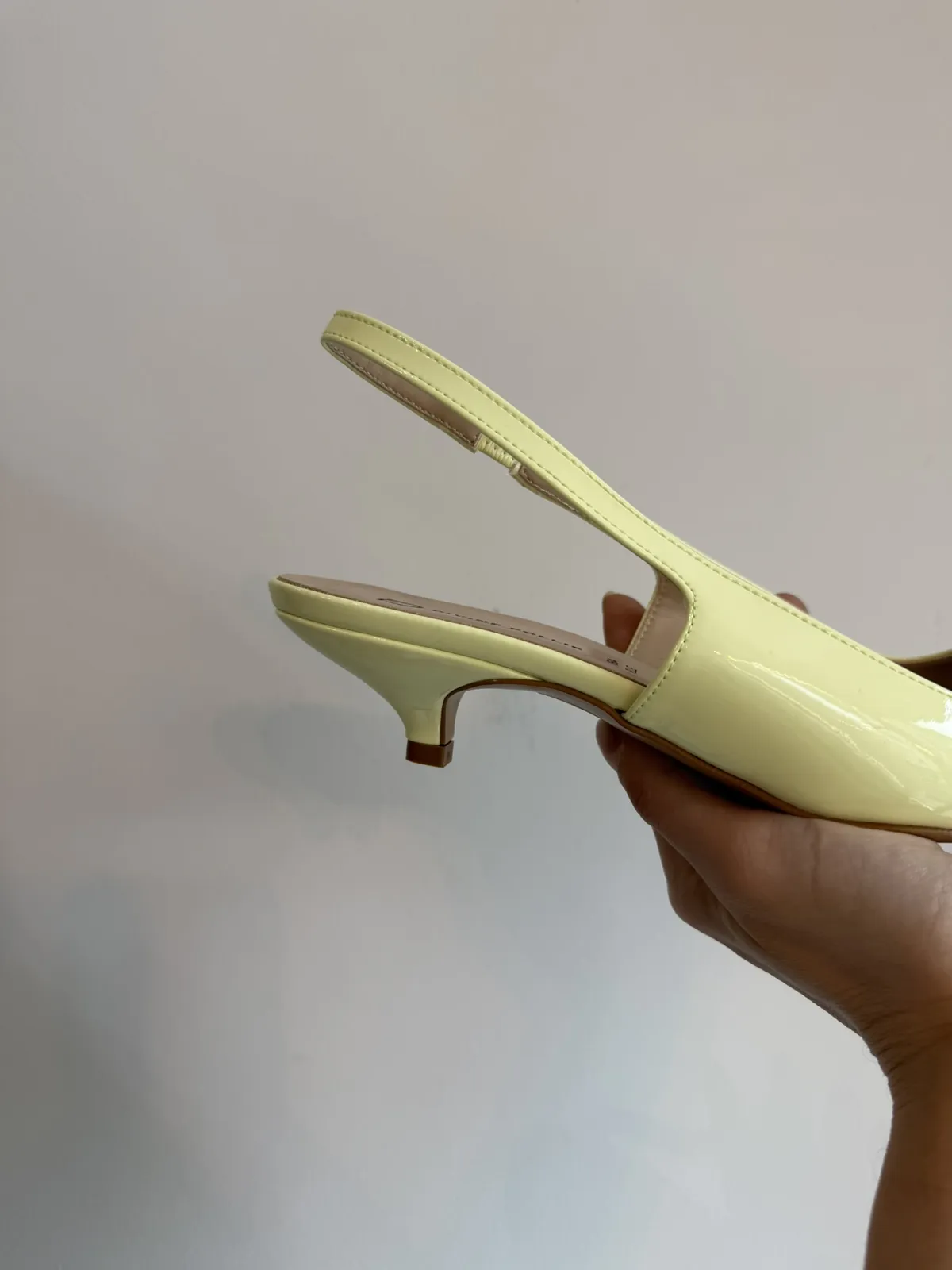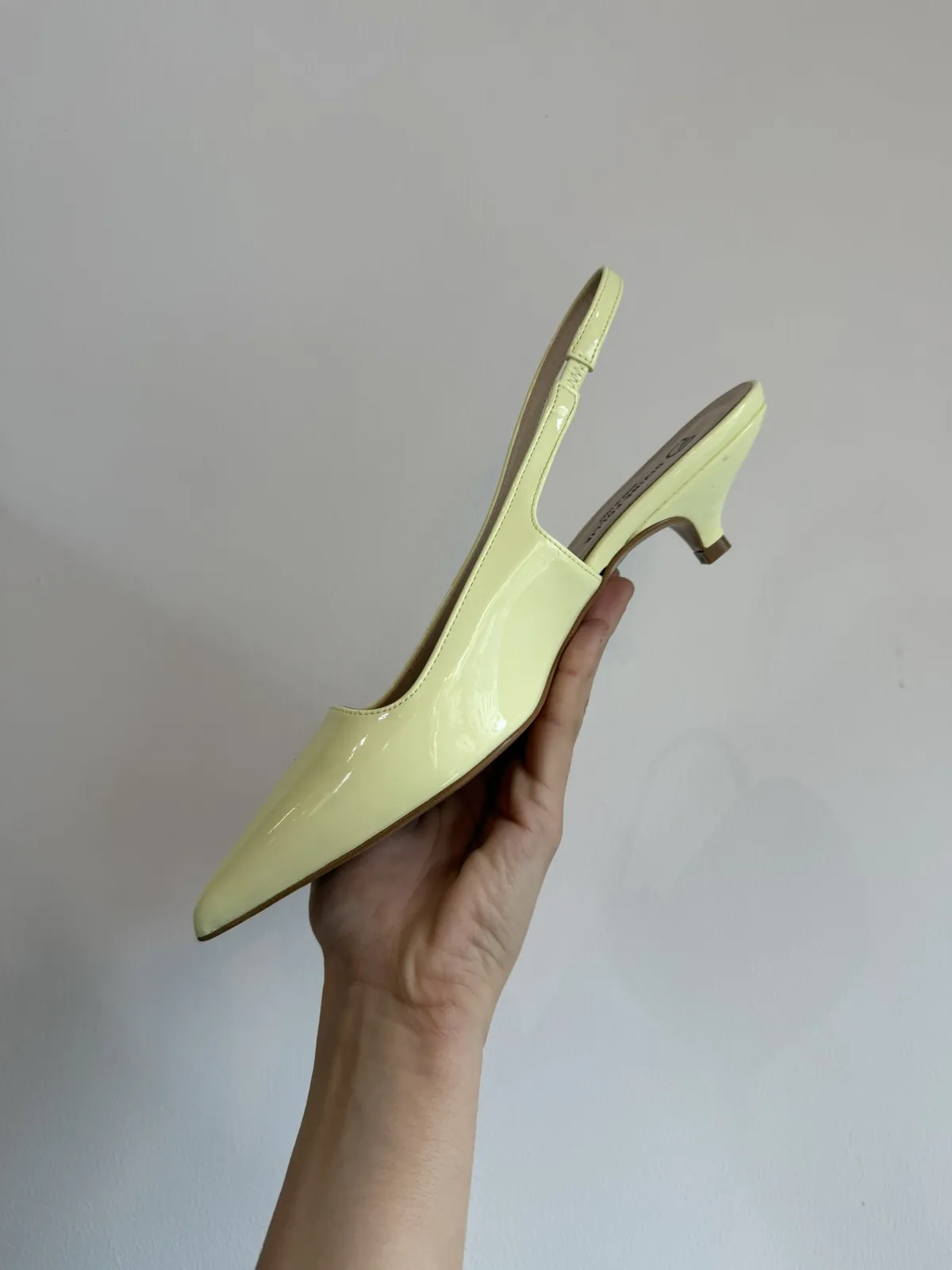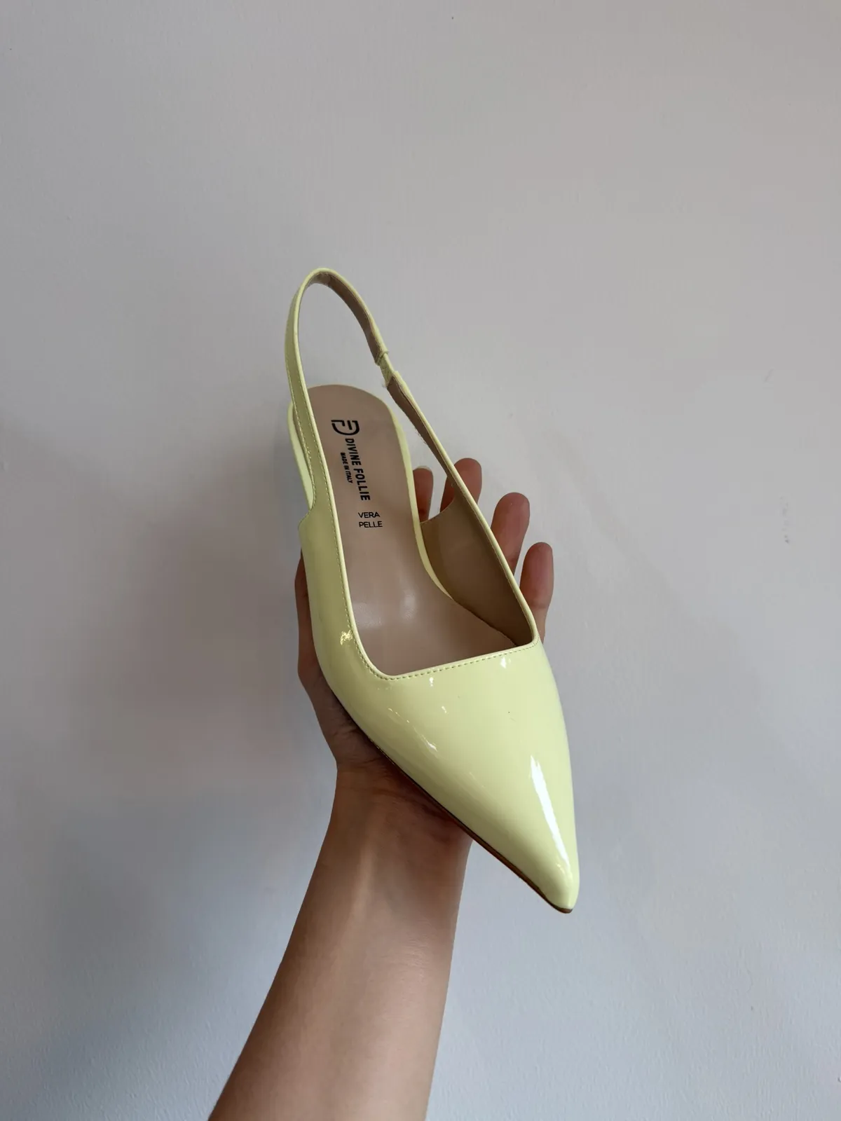 Slingback in ecopelle effetto vernice pastello, fibbia con elemento elastico, tacco 4 cm