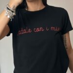 T-shirt girocollo fit morbido con stampa lurex argento centrale