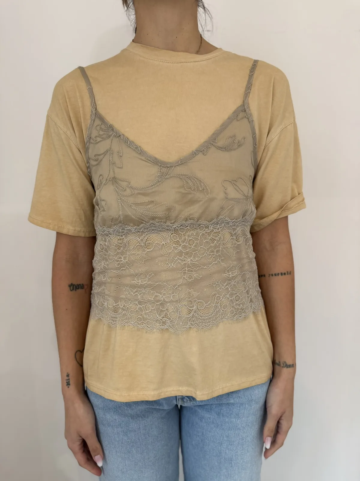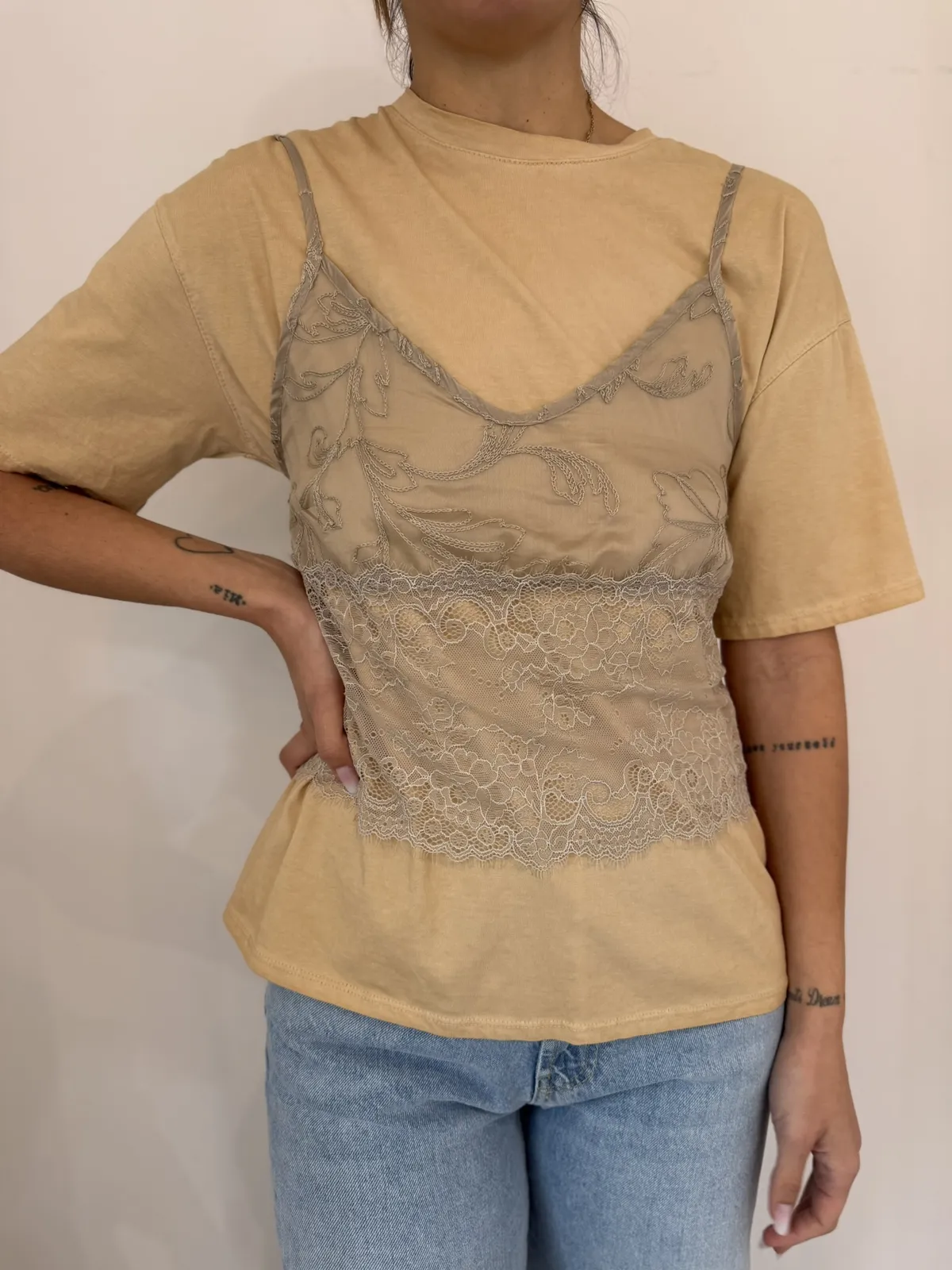- T-shirt stone wash + canotta in pizzo miele – Vicolo