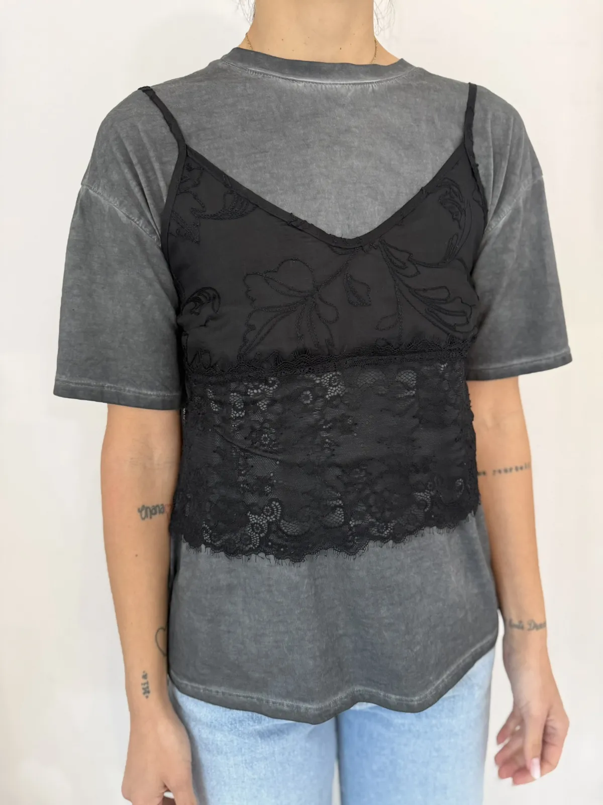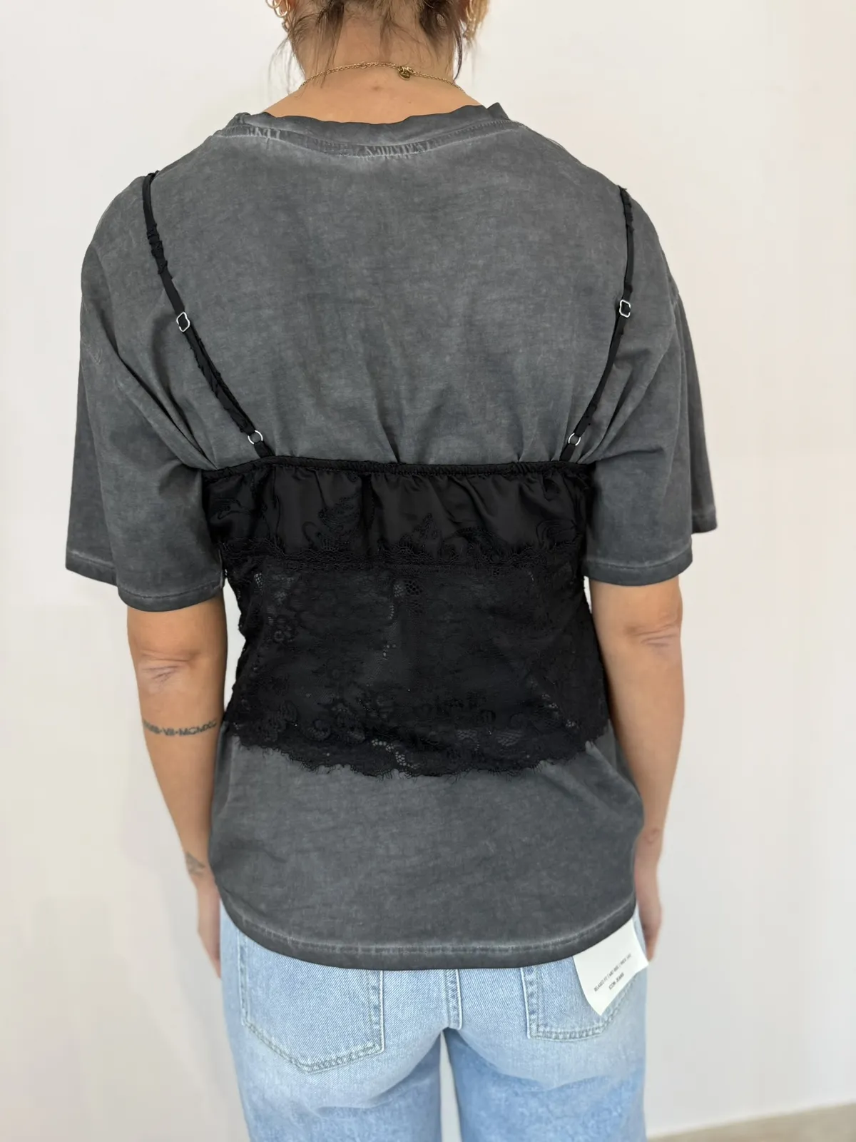 - T-shirt stone wash + canotta in pizzo nero – Vicolo