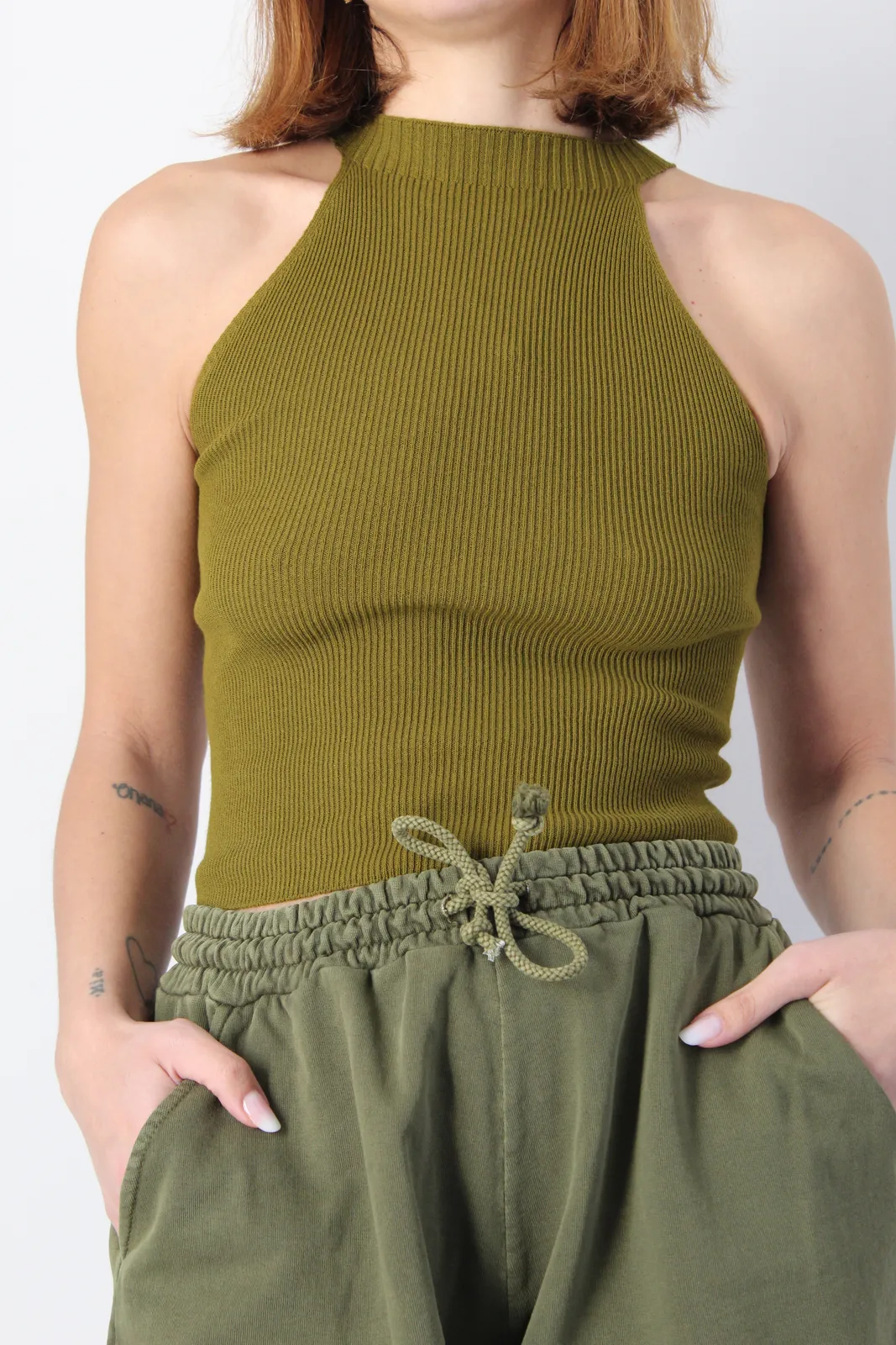 Top in morbida viscosa slim fit lunghezza regular con mezzo colletto a cratere