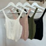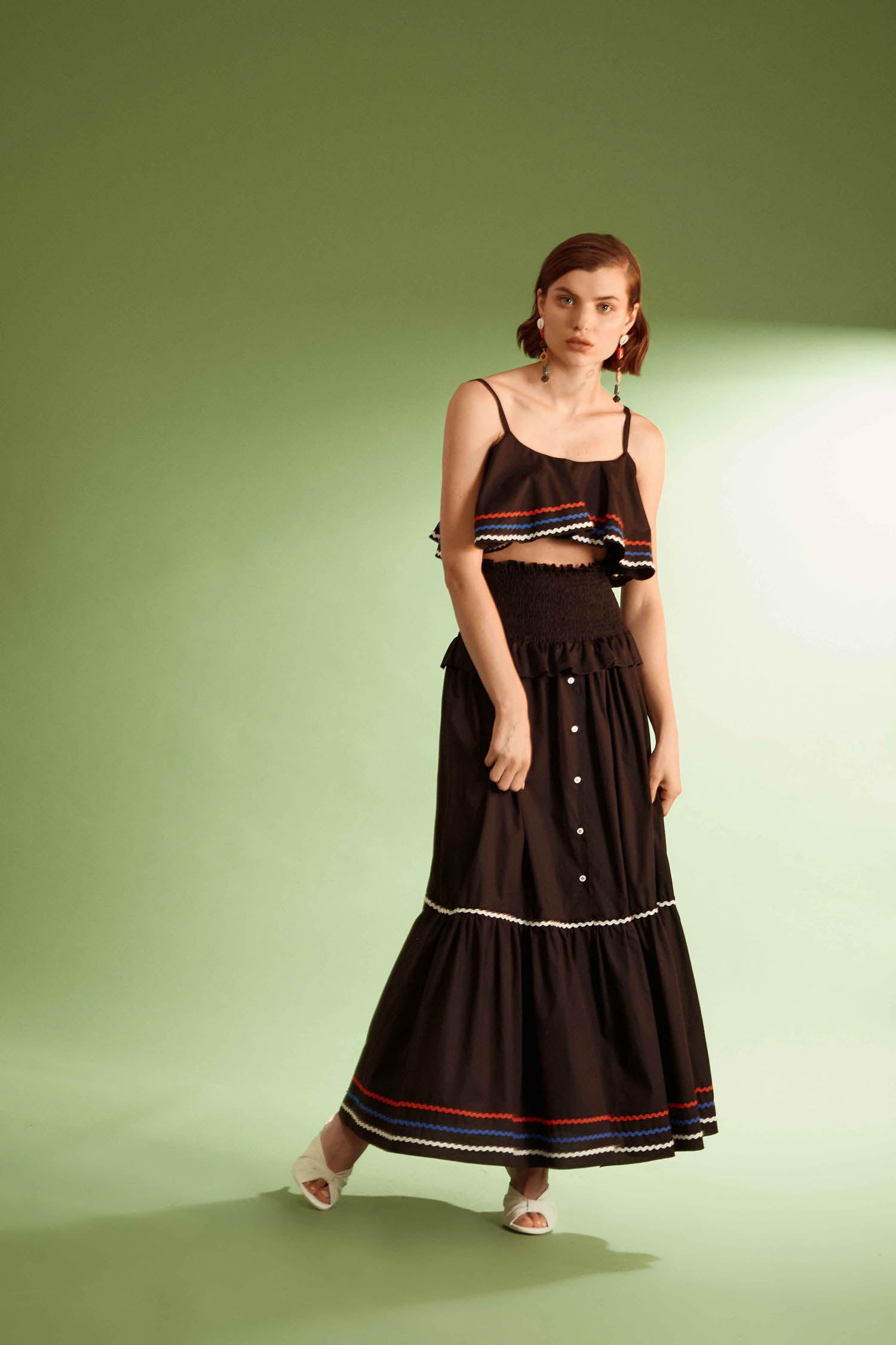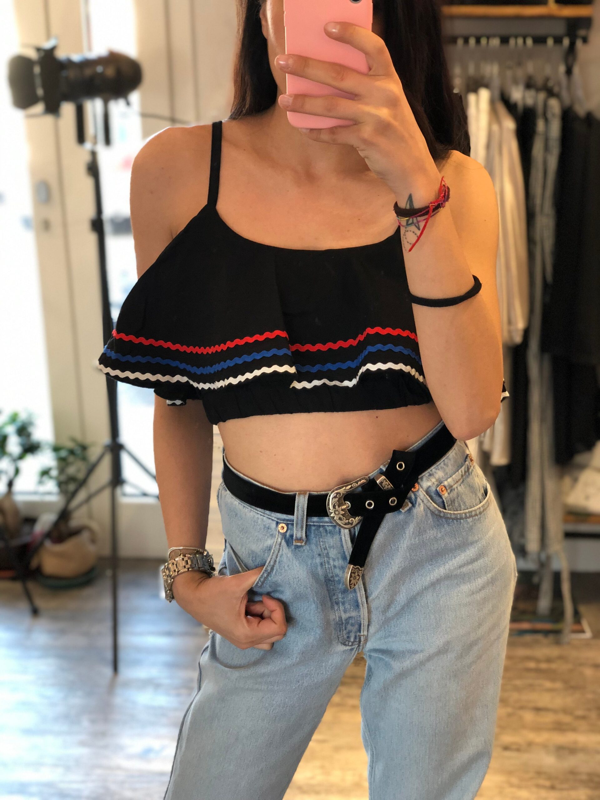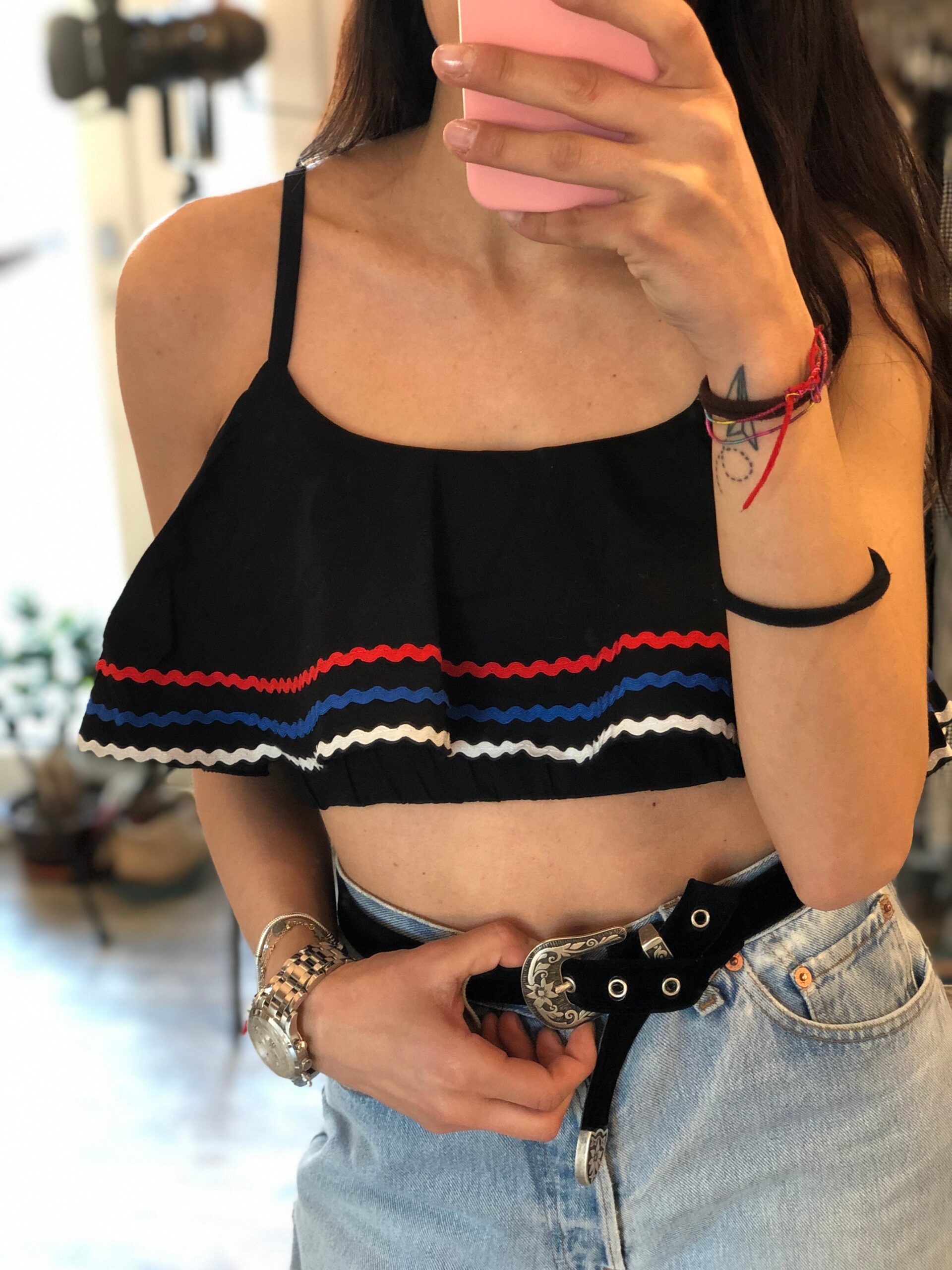 Top cropped in popeline con trinette colorata e spalline non regolabili