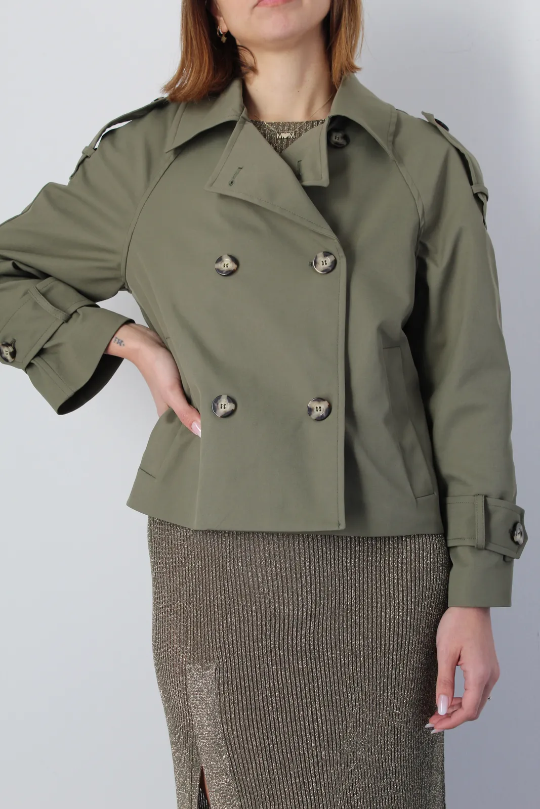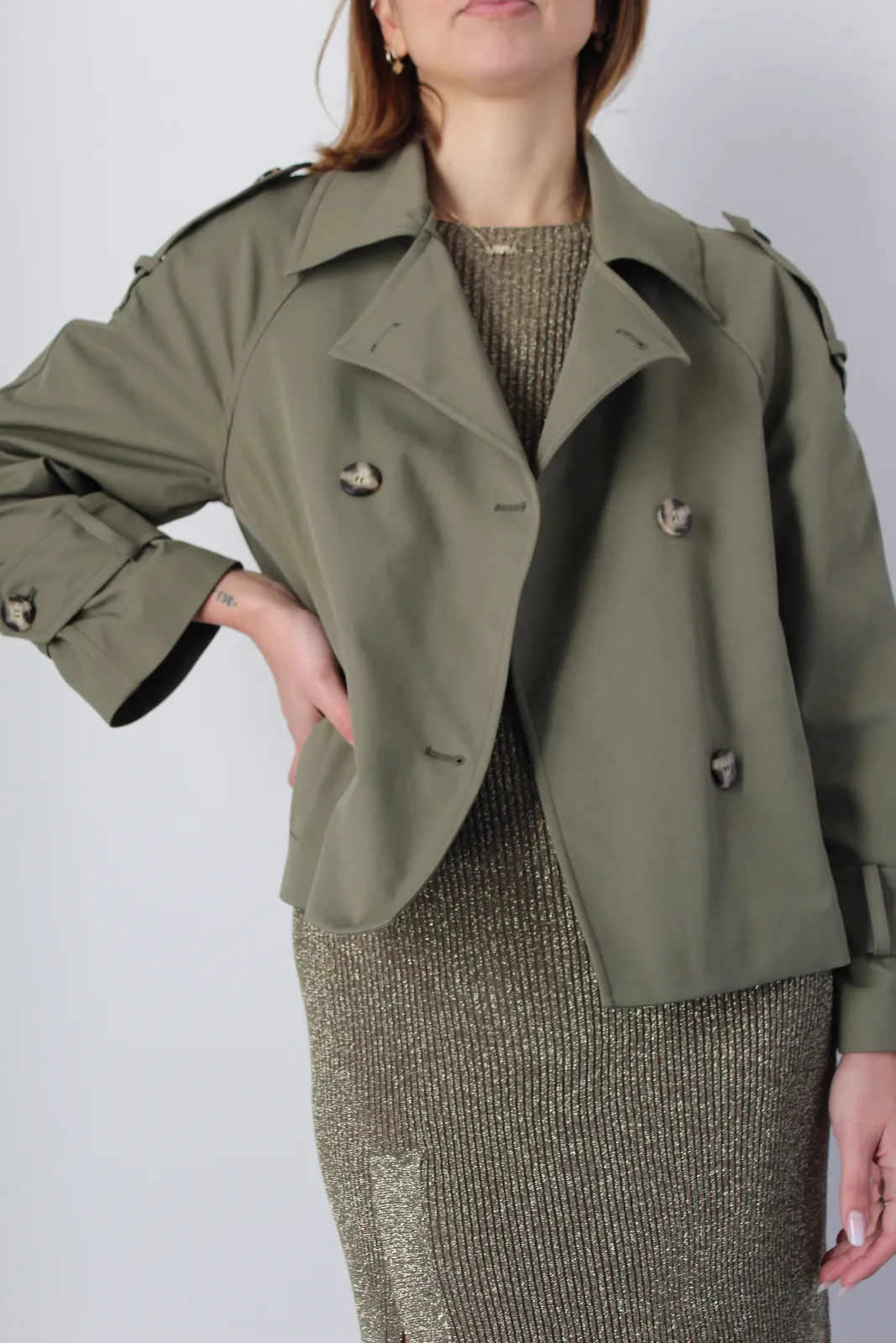 Trench corto a scatoletta verde kaki, regular fit, fodera interna