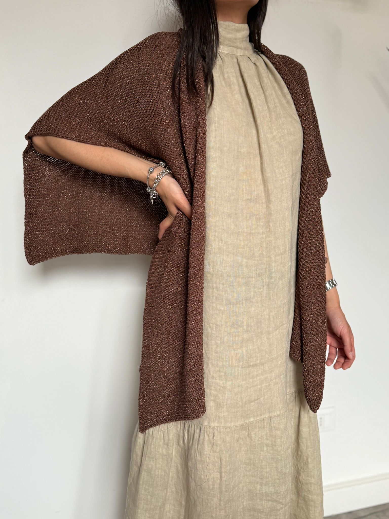 Il prezzo originale era: € 60,00.€ 30,00Il prezzo attuale è: € 30,00.Vicolo – coprispalle lurex con nodo – Moro15 Aprile 2025