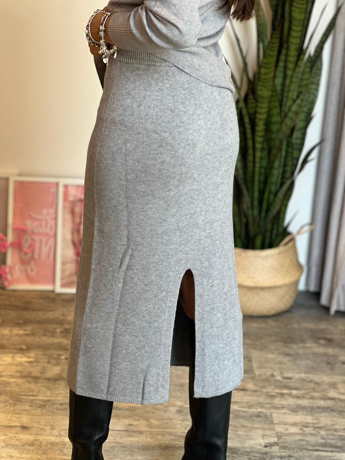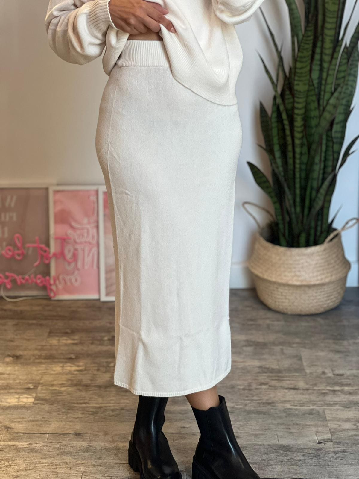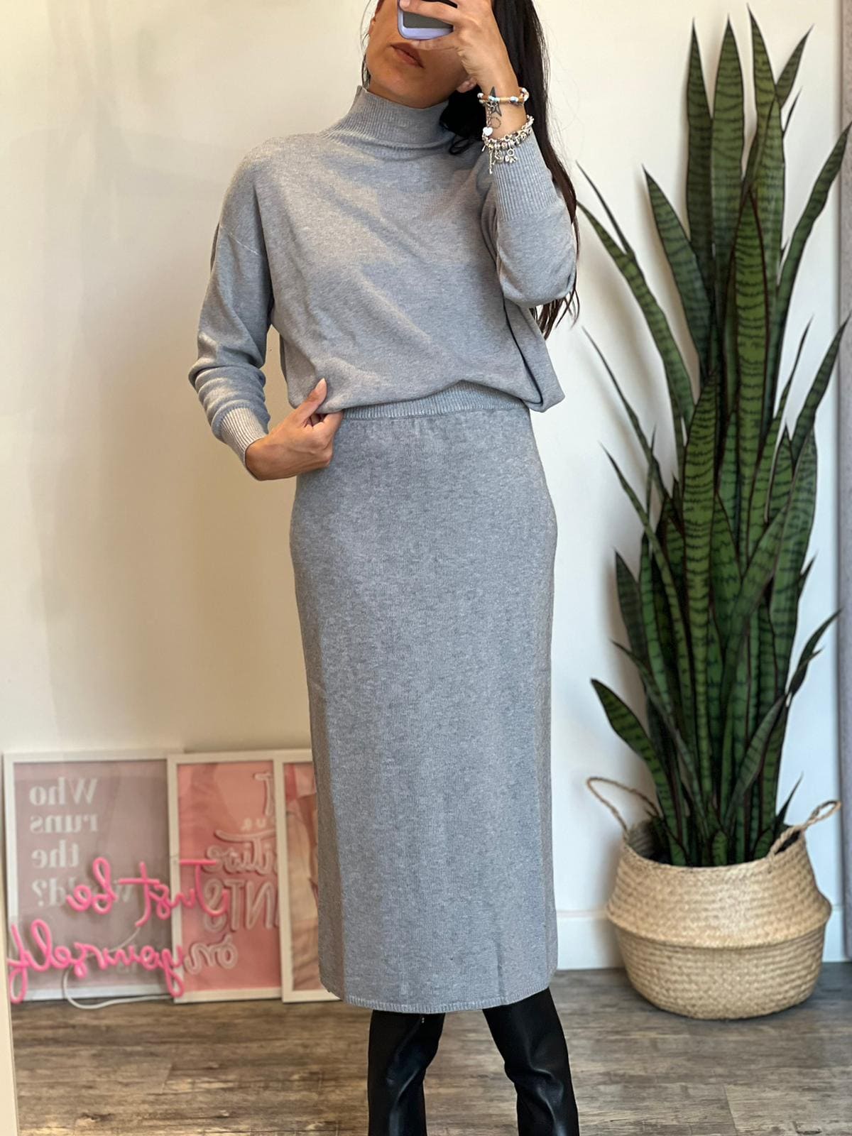 Longuette in maglia di viscosa con banda elastica arricciata in vita, spacco a V sul retro, fit lineare e aderente
