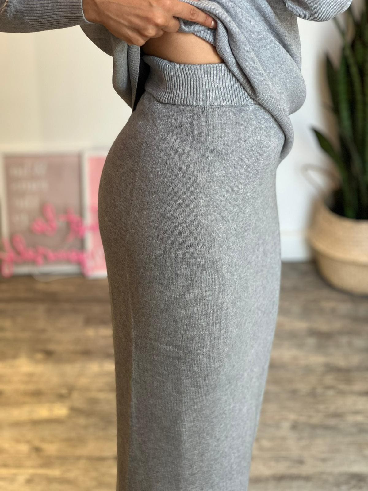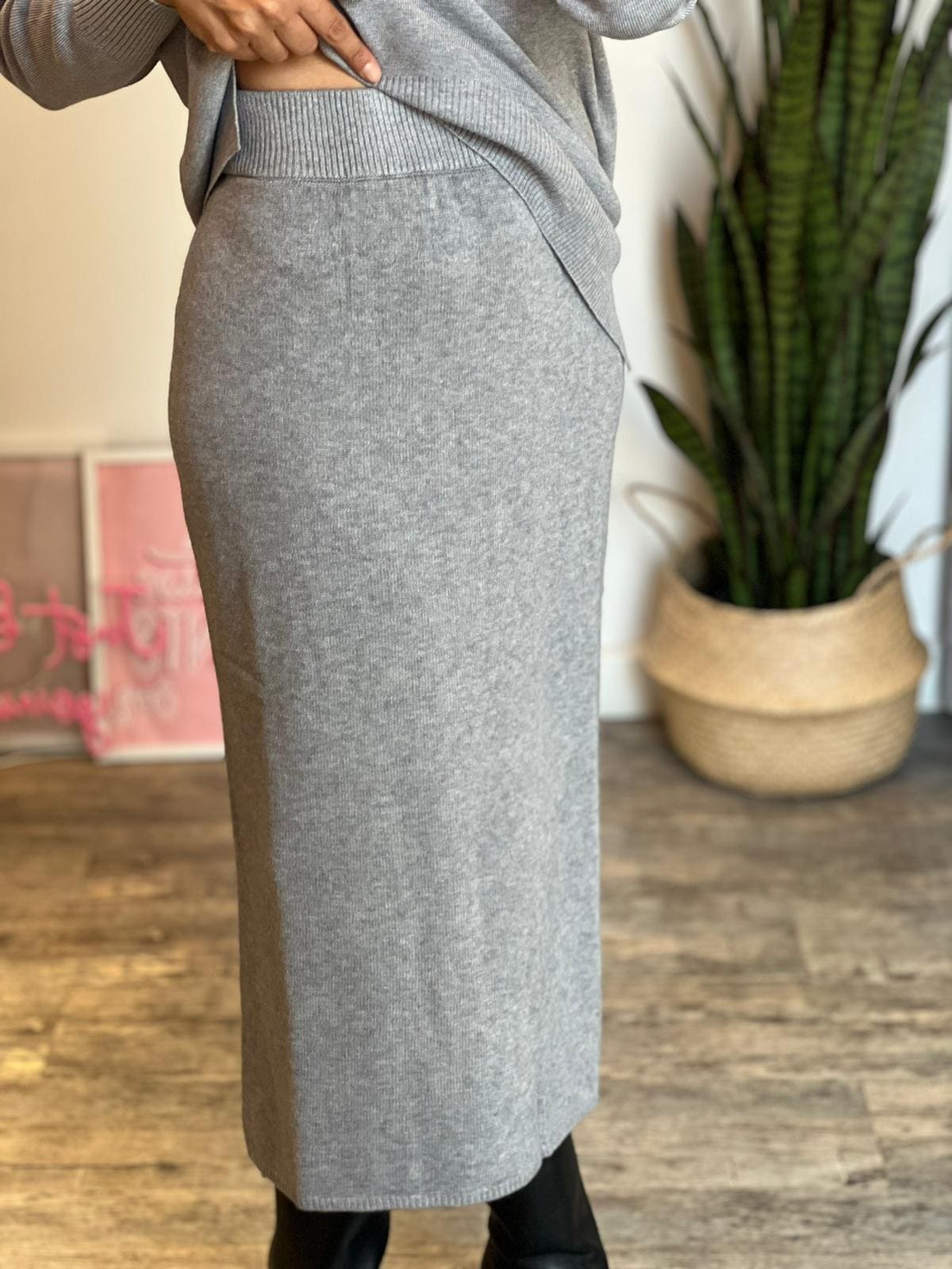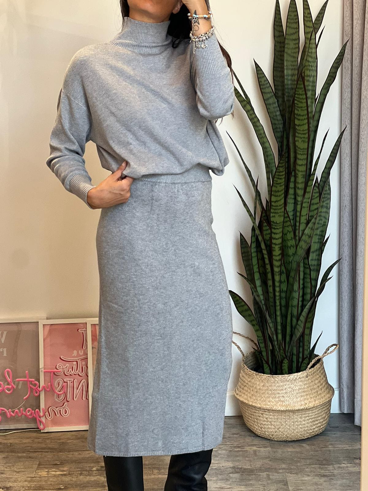 Longuette in maglia di viscosa con banda elastica arricciata in vita, spacco a V sul retro, fit lineare e aderente