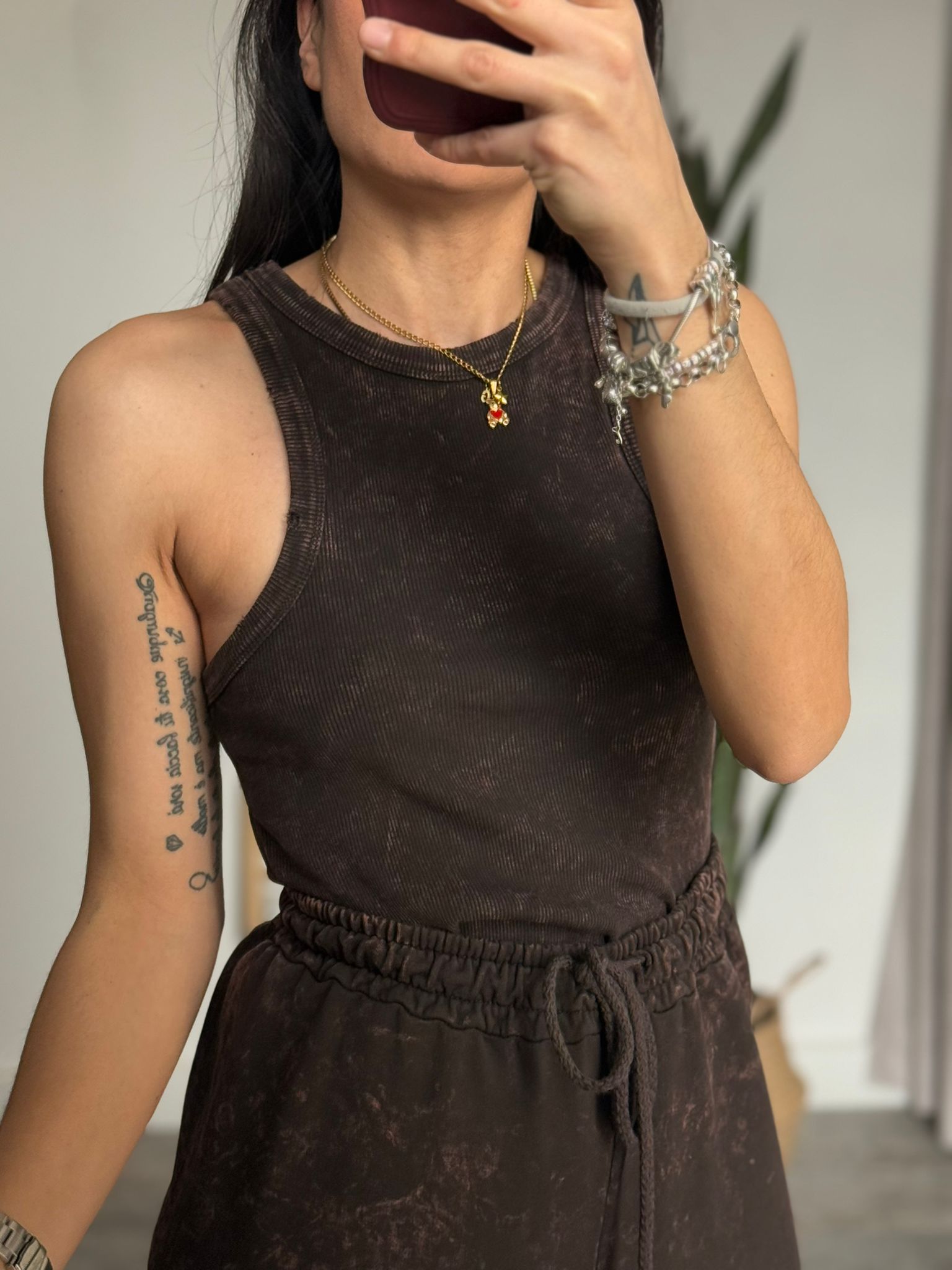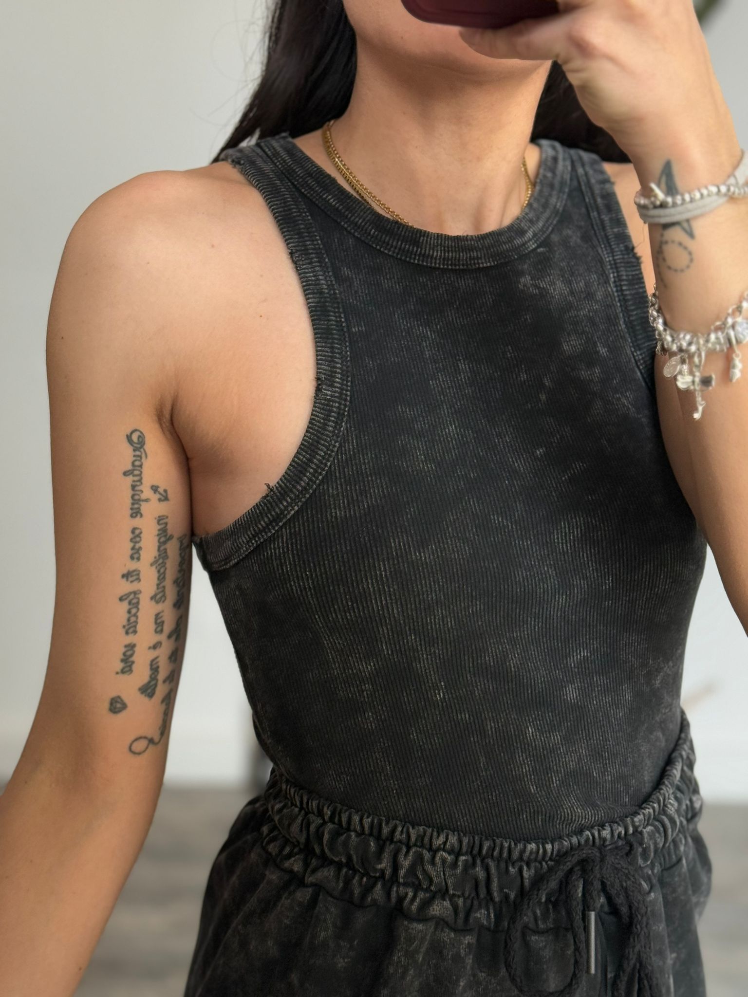 Canotta vogatore a coste, fit slim a taglie con micro rotture sparse sulle bordature